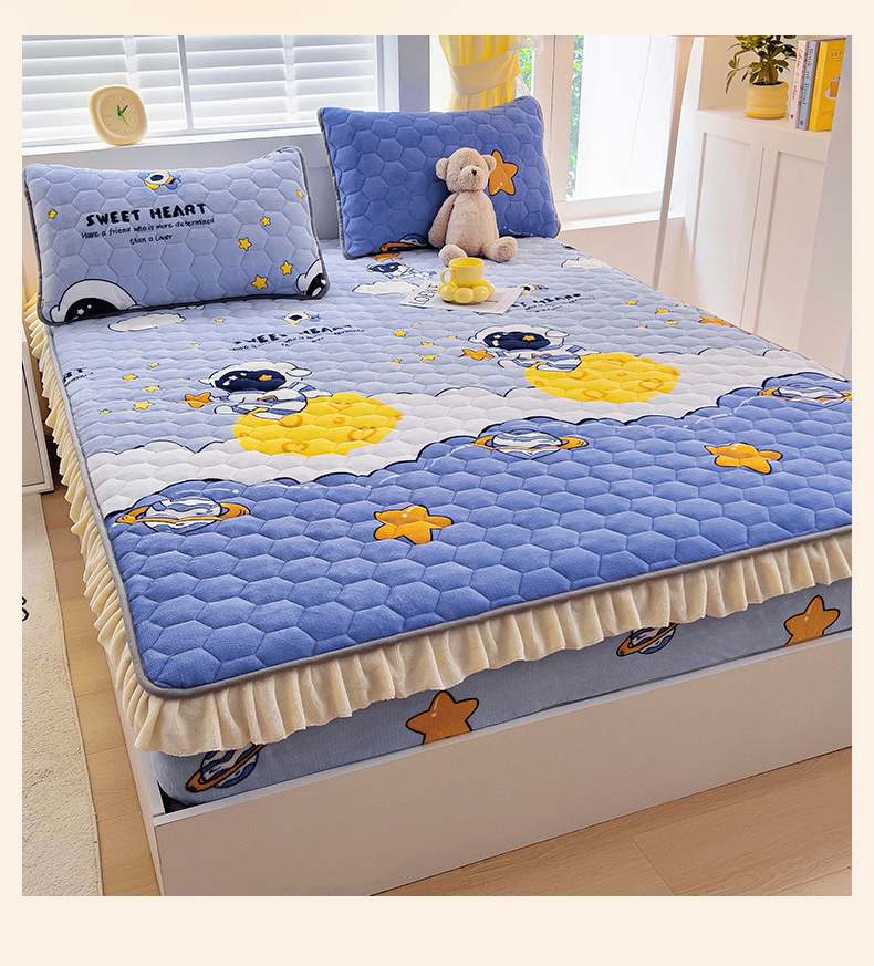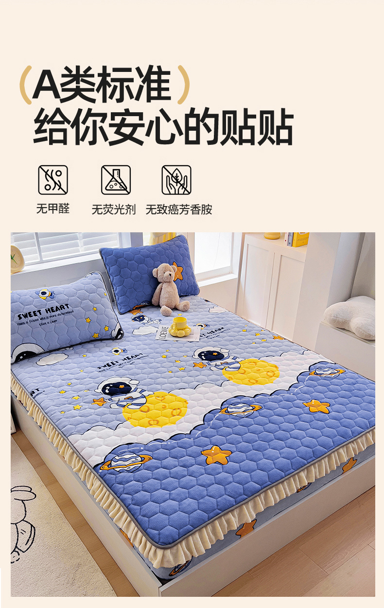 (总)情煊家纺 2025新款A类牛奶绒印花夹棉床垫,一鹿幸福,乐拼字母,大牌风范,太空漫步,蓝大格,爱心小熊,豹纹,大力熊,蝶恋,红玫瑰,林深见鹿,秘境,蘑菇小兔,童趣,童真,西高地,银杏叶,紫爱心