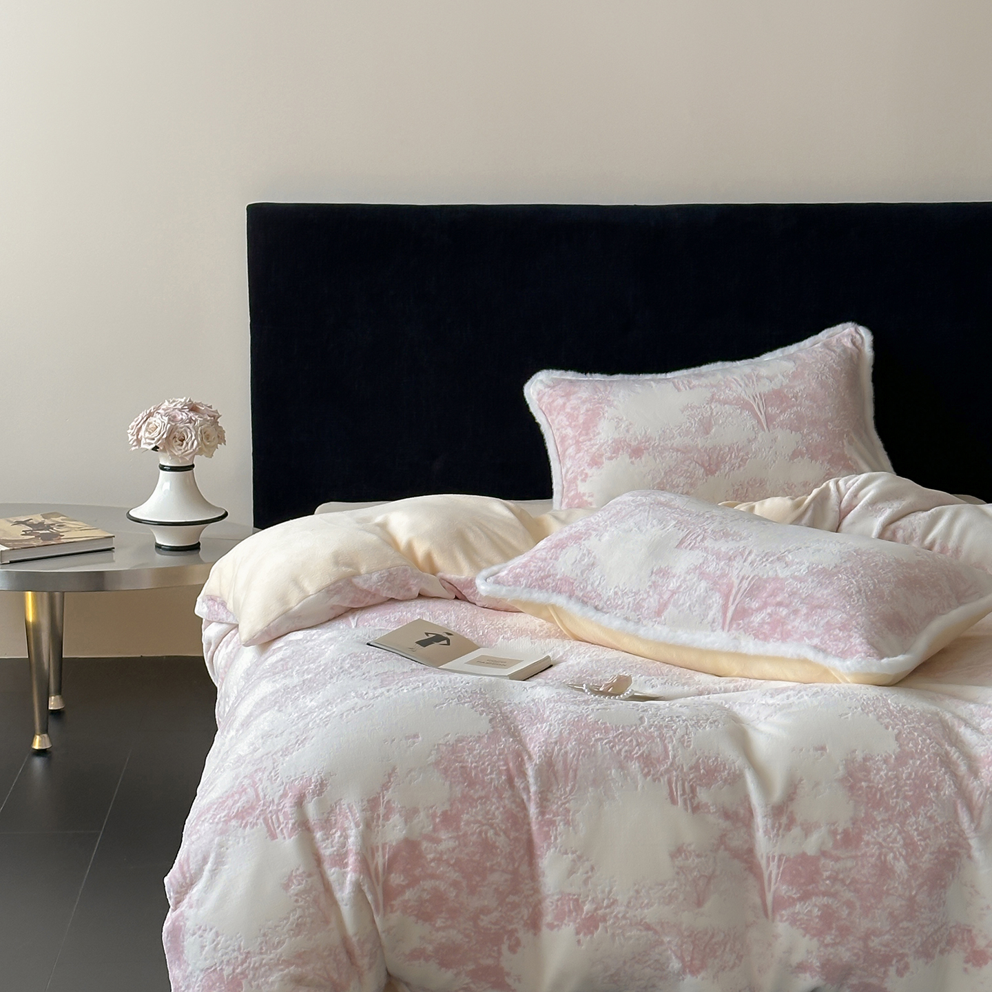商品名称:梦享生活家居 2025新款轻奢牛奶绒四件套系列 莫奈粉