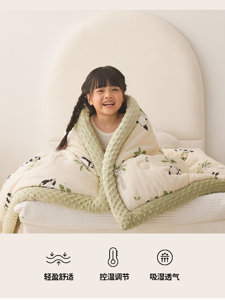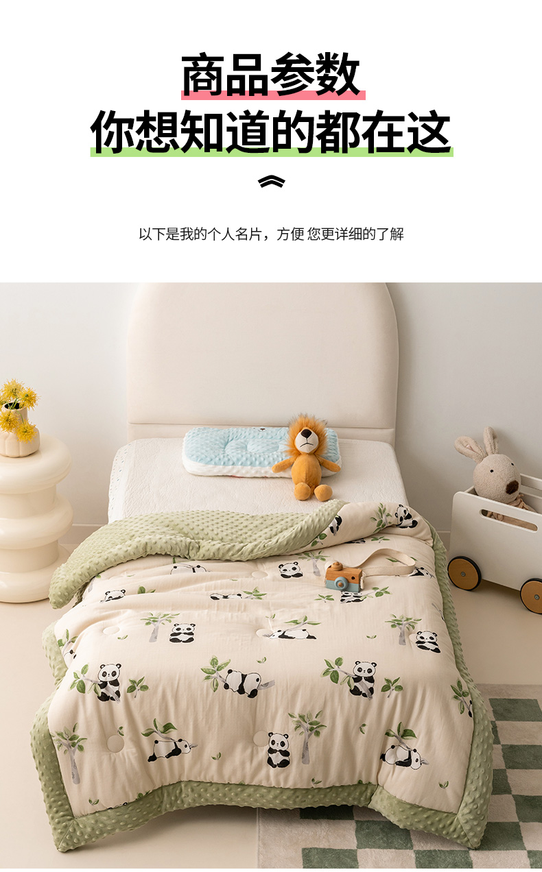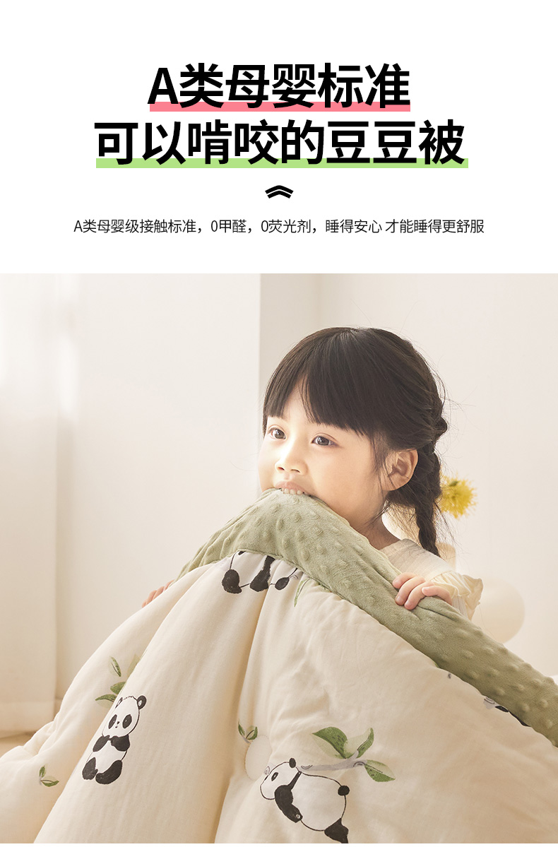 商品名称:嗨生活 2025年新款全棉纯棉双层纱豆豆被儿童被春秋被冬被幼儿园被子 熊猫盼盼
