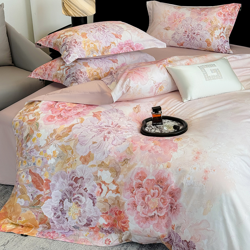 (总)东方名伶 2025新款莱赛尔兰精天丝棉数码印花宽边四件套,漫漫花开-紫,爱丁堡,漫漫花开-绿,莫奈花园紫,莫奈花园玉,波利花园紫,波利花园粉