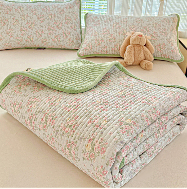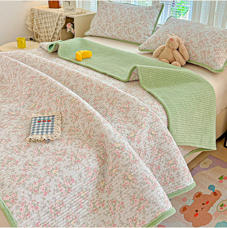 恒尚居 2025新款全棉牛奶绒床盖四季可用纯棉夹棉床单床褥垫三件套-秋冬款系列二 紫薇花【A纯棉-B牛奶绒】