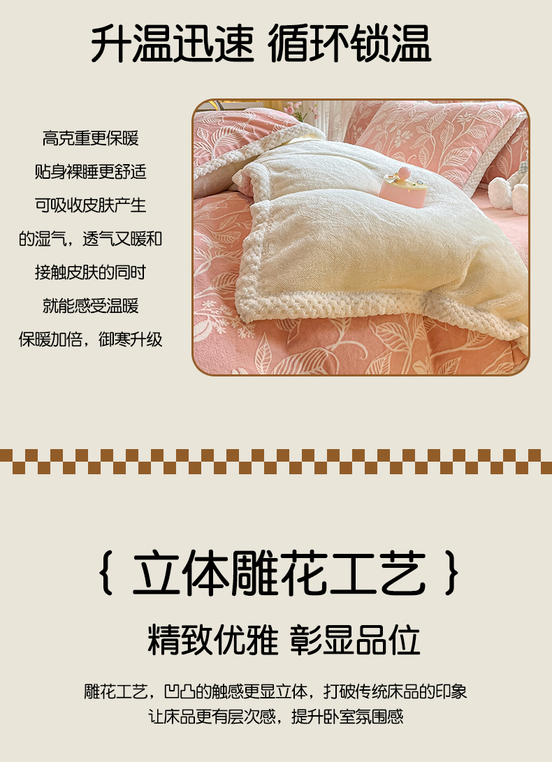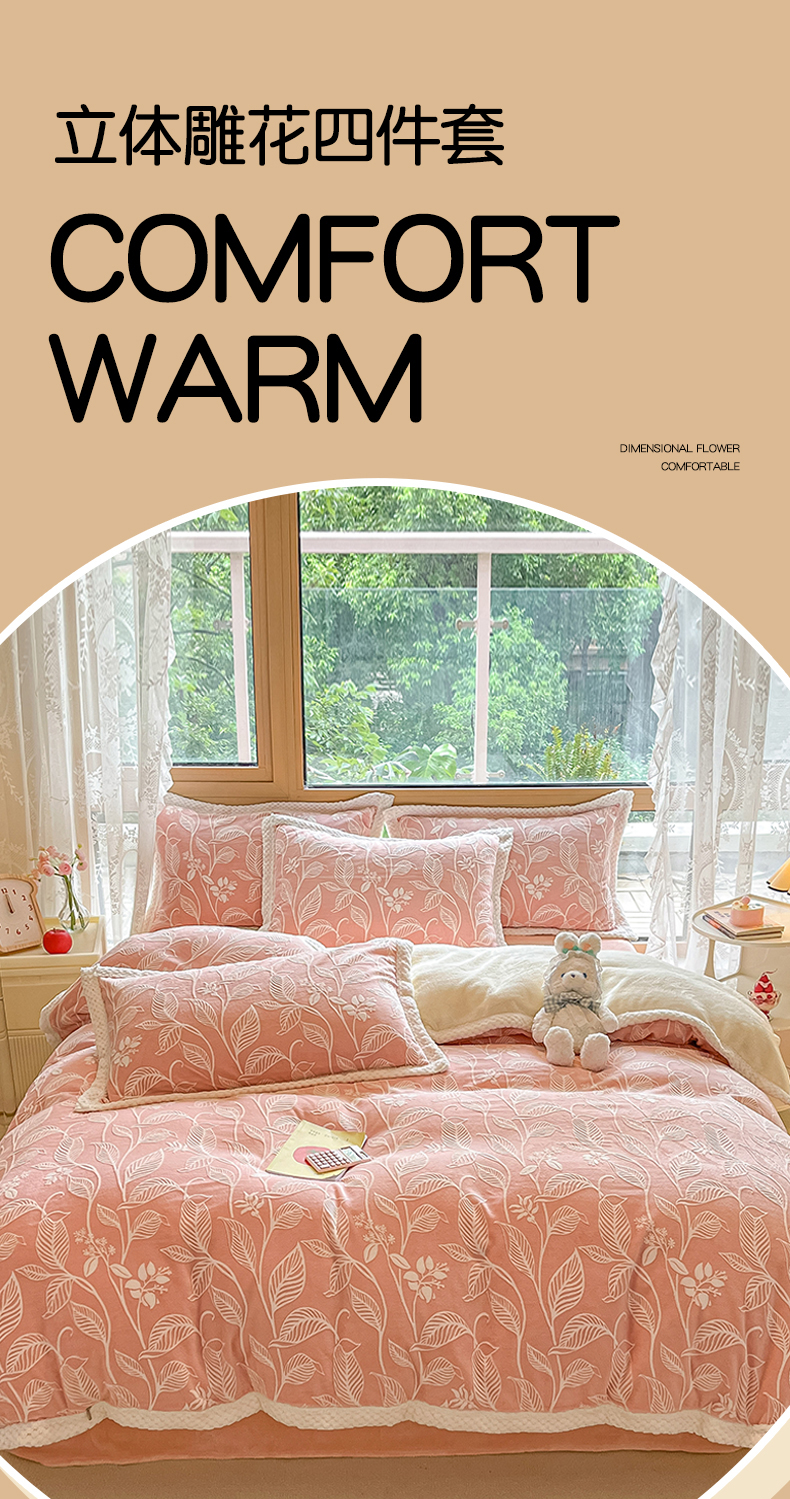 当前位置: 91家纺网 > 商品网购 > 床品套件 > 四件套 > 其它四件套 > 琪格格纺织 2025新款全消光包边立体简约清新雕花绒四件套 雕花包边-迪娅妮 粉玉