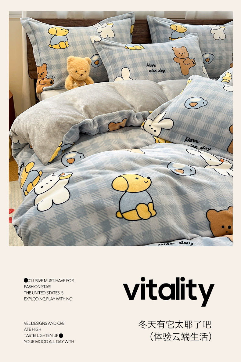 商品名称:(总)女子家纺 2025新款高克重加厚保暖牛奶绒印花四件套