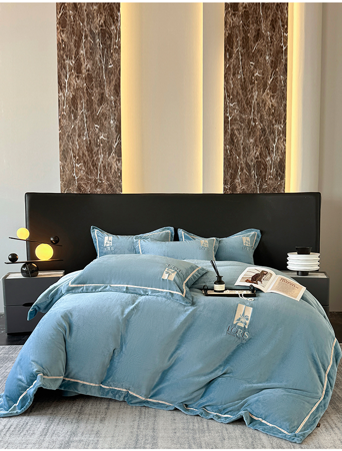 宅家居 2025新款秋冬轻奢小香风刺绣全消光A类高克重牛奶绒四件套-艾菲尔 艾菲尔-雾蓝