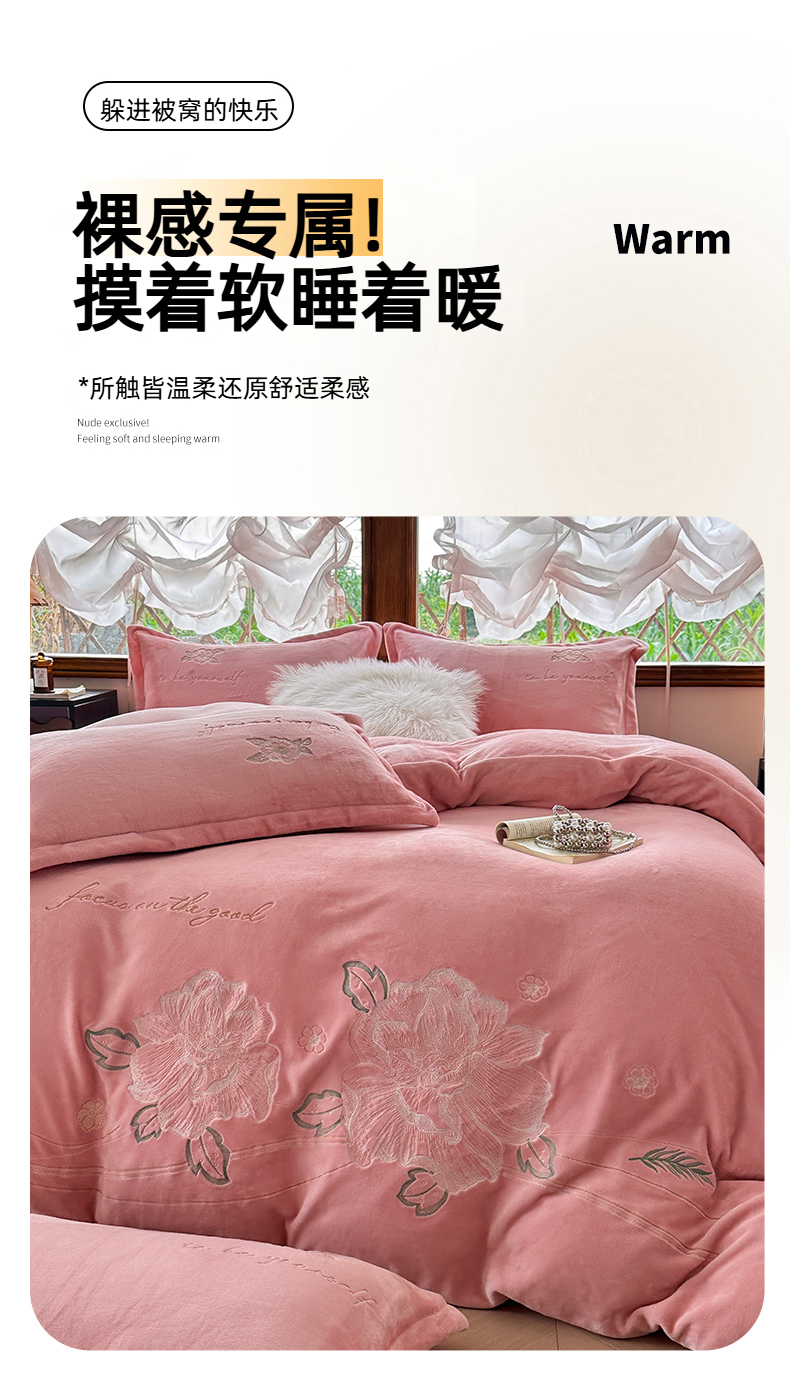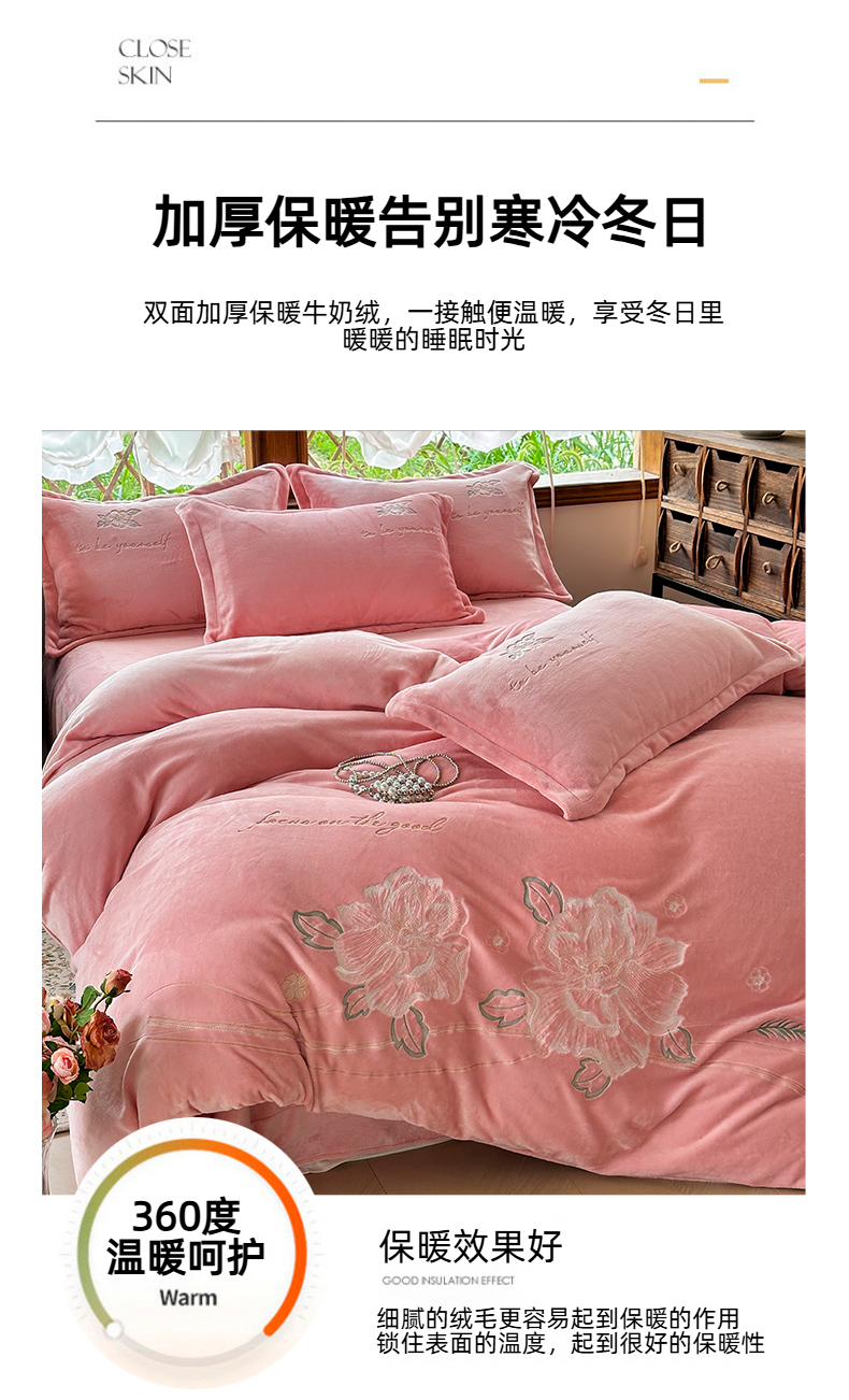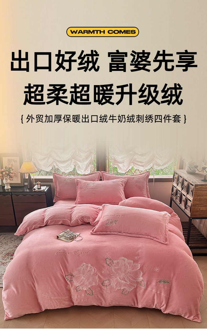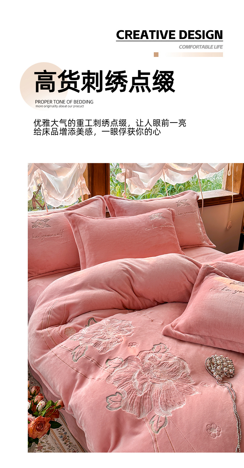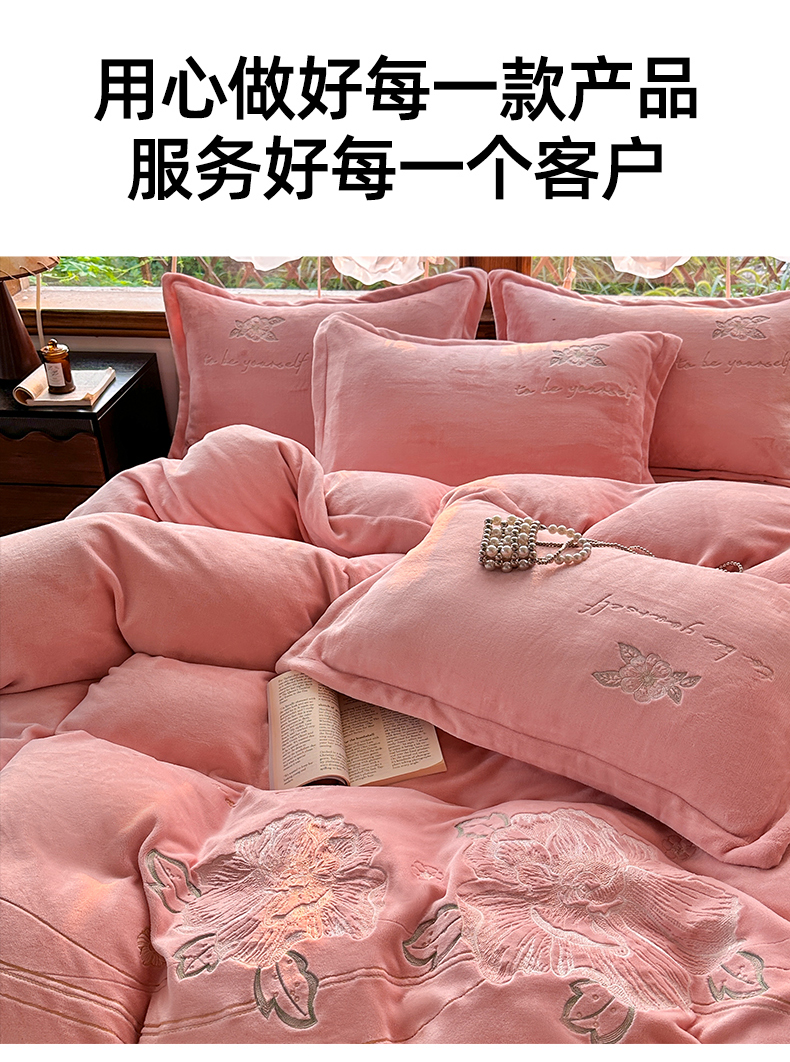 (总)【苏东来】2025高端加厚保暖外贸轻奢款纯色牛奶绒刺绣花四件套床单被套单品简约绒兔毛绒法莱绒婴儿绒套件,时光米黄,时光粉,时光卡其,时光天蓝,时光豆沙
