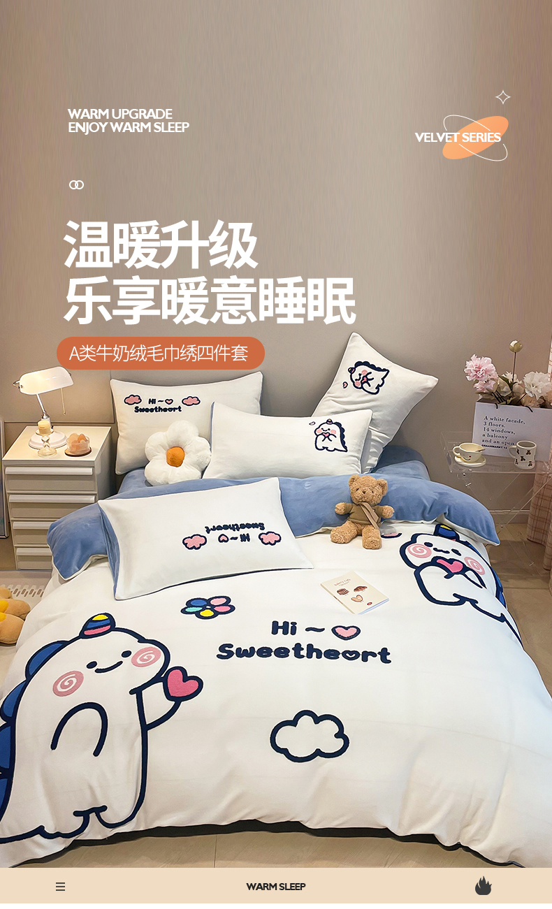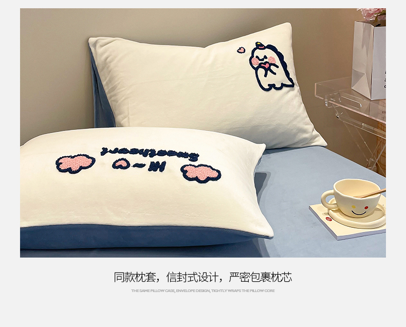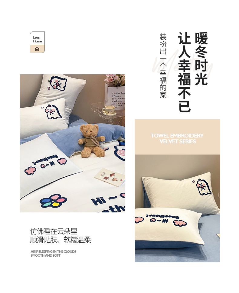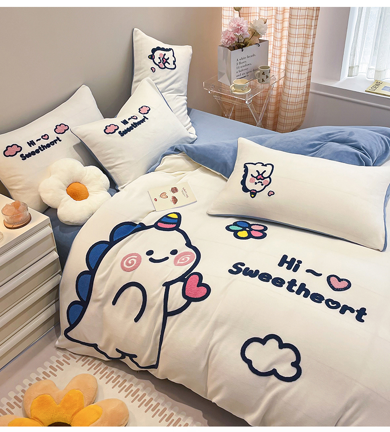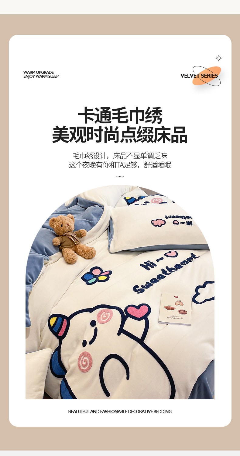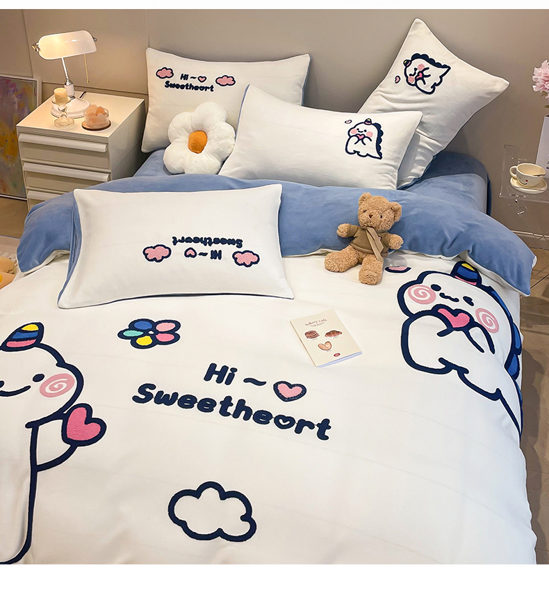 商品名称:懒猫家纺 2025新款牛奶绒毛巾绣四件套 萌宠
