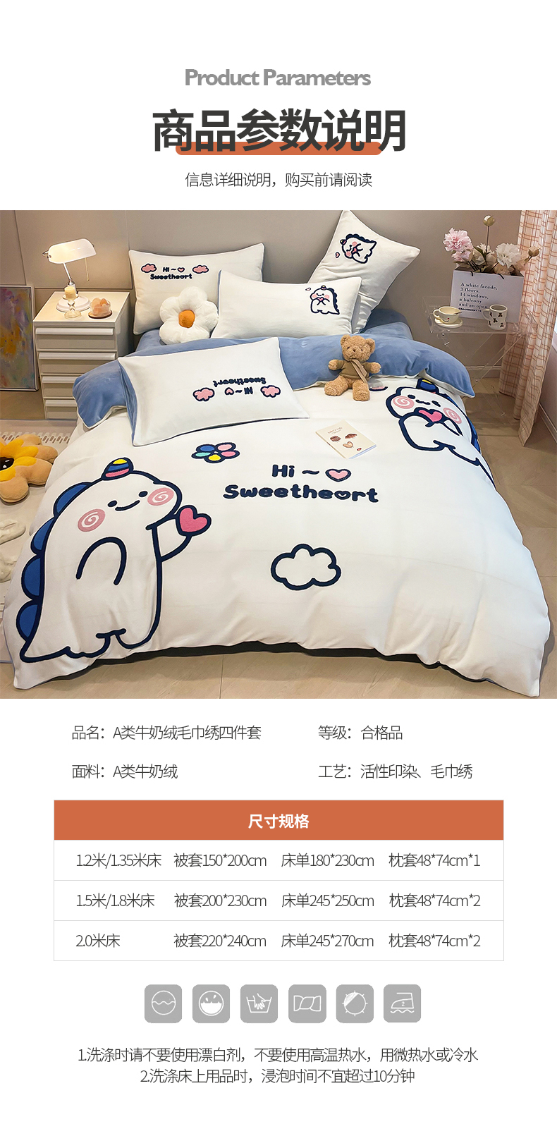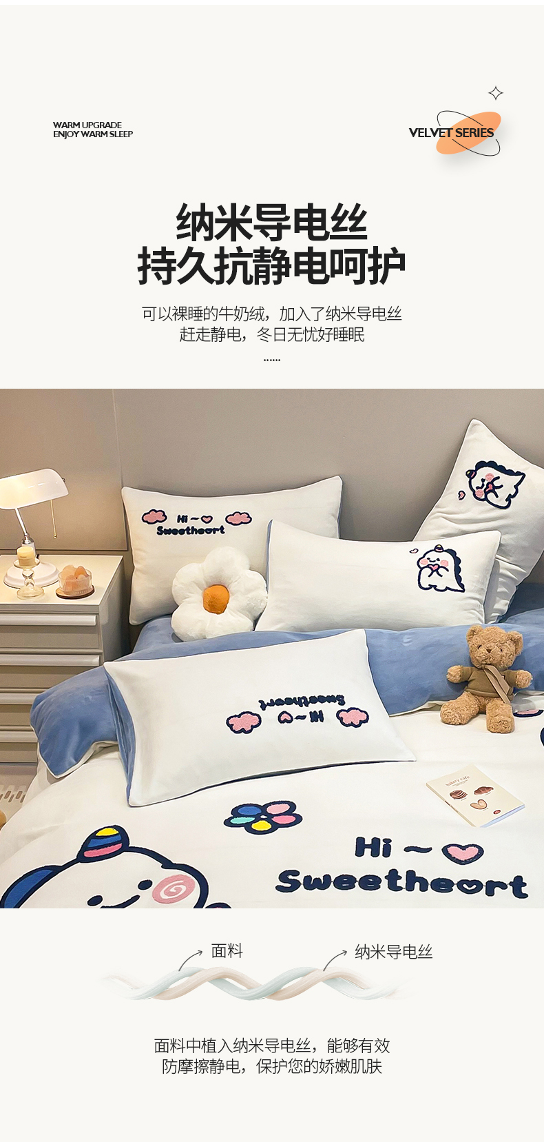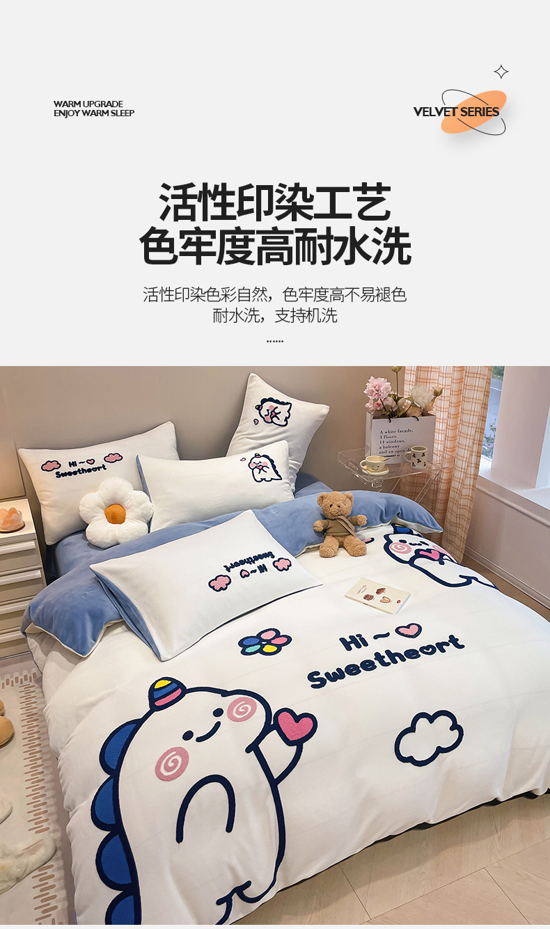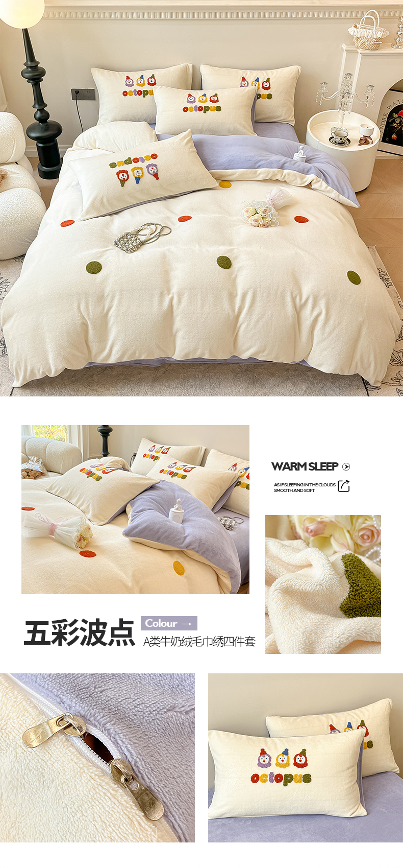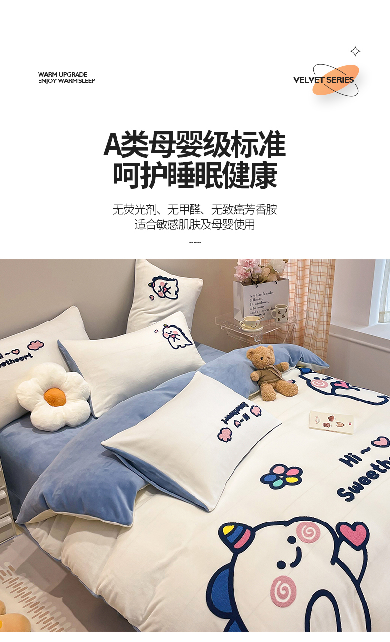 商品名称:懒猫家纺 2025新款牛奶绒毛巾绣四件套 萌宠