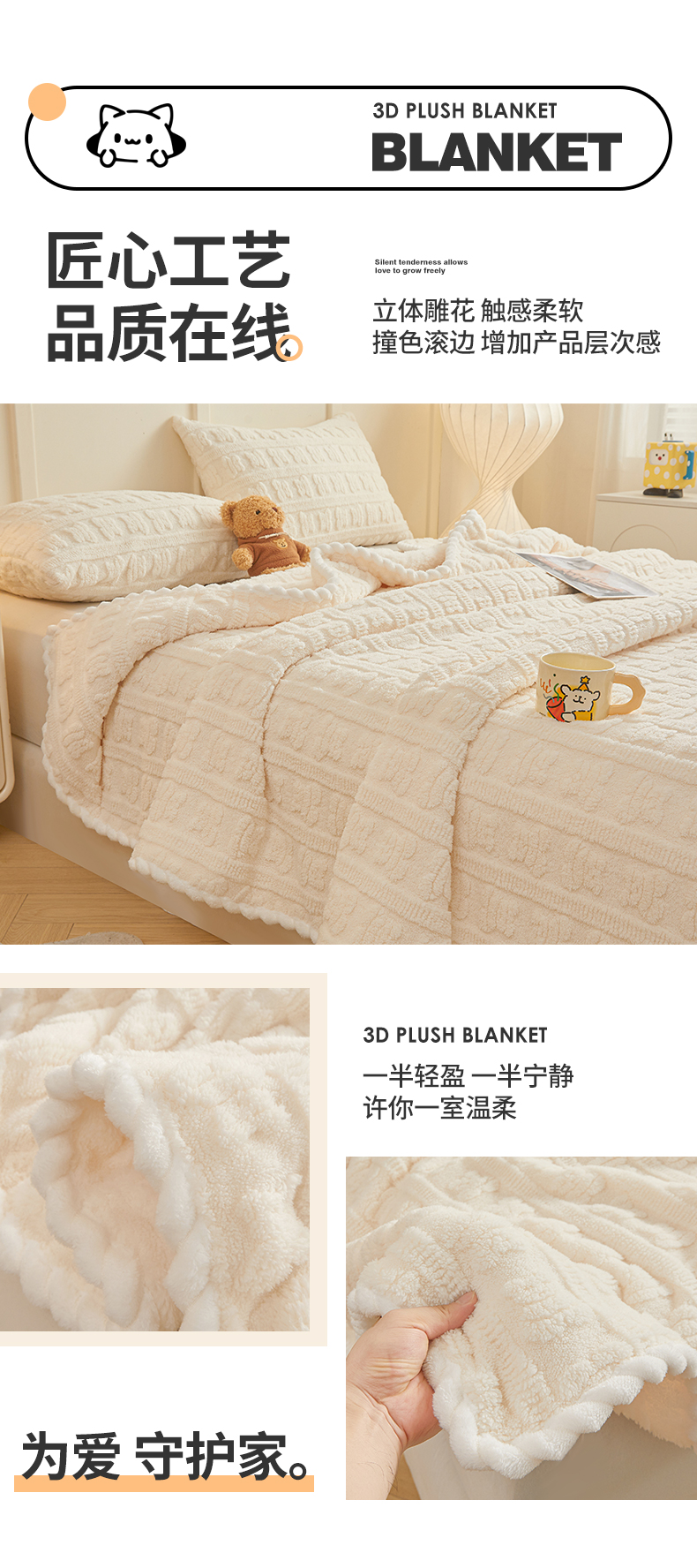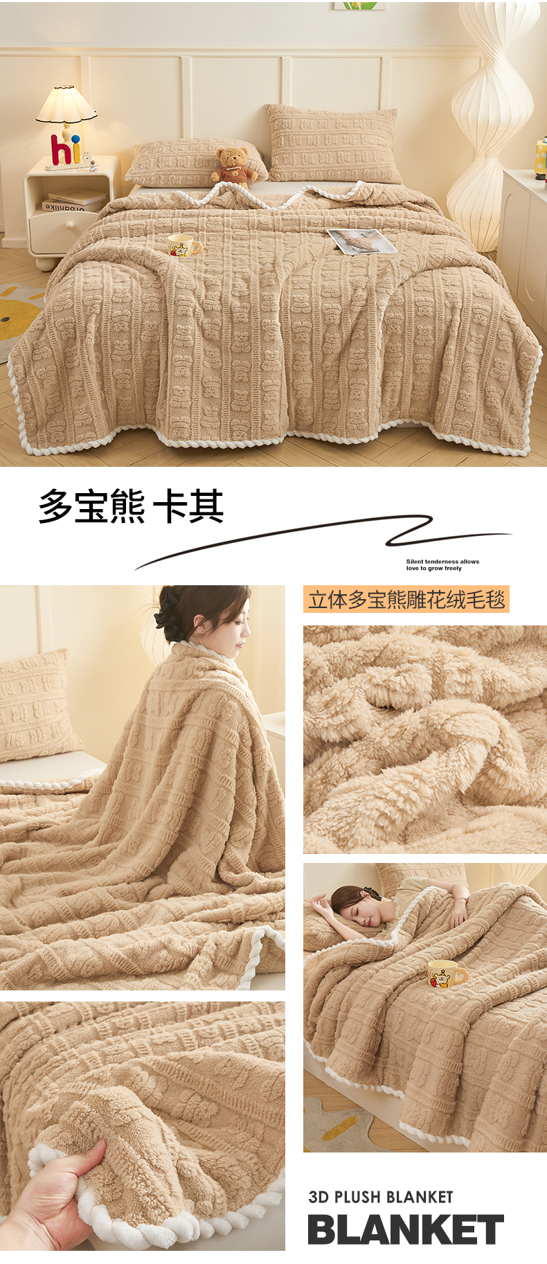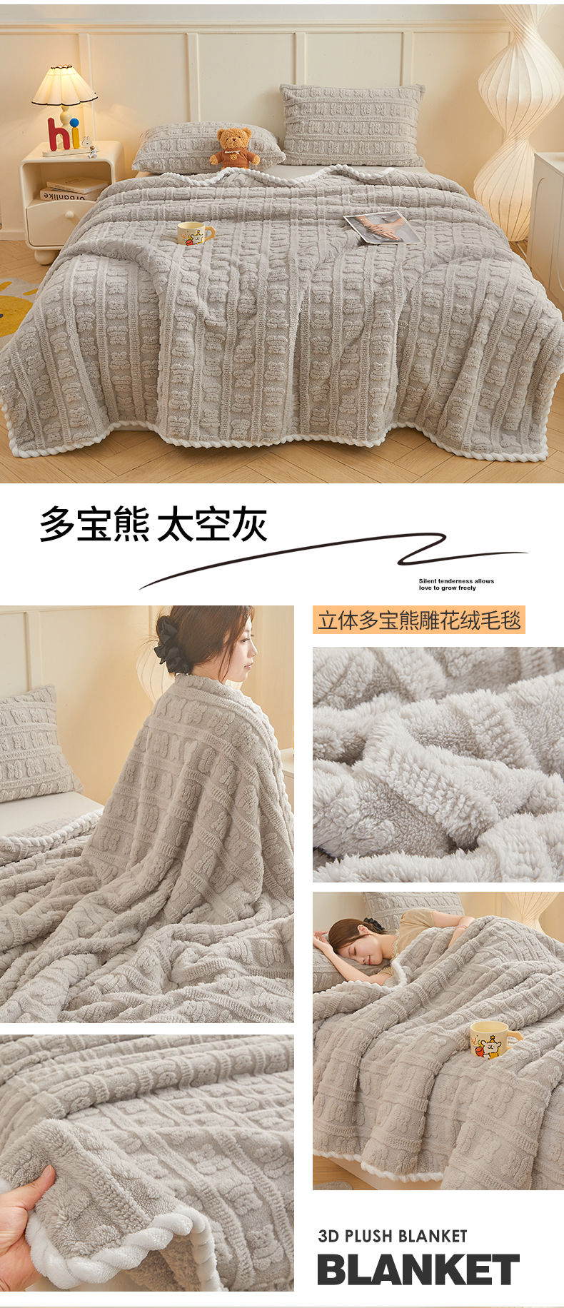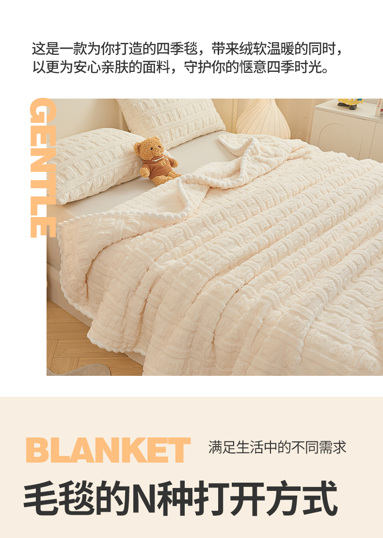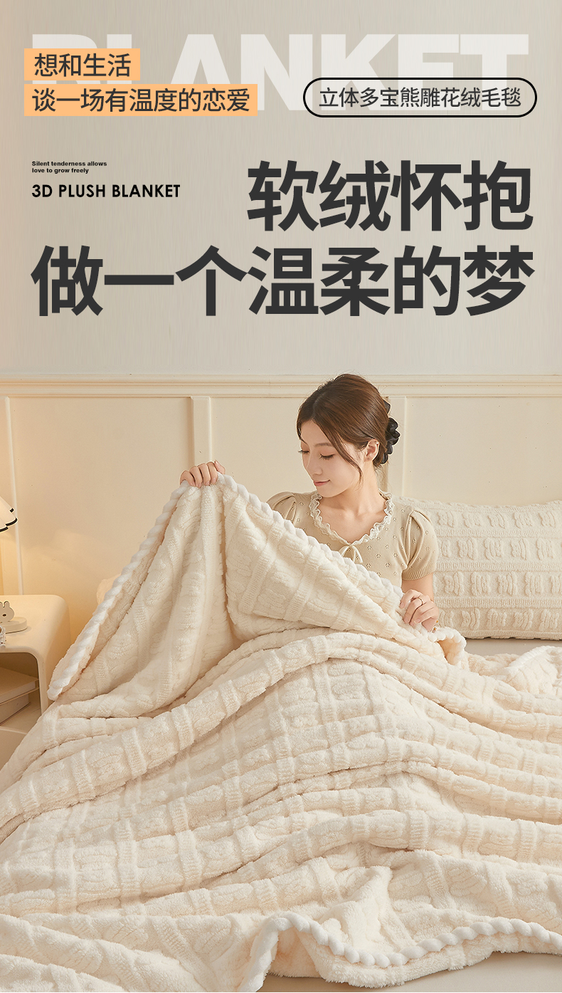 (总)世纪绒品 2025新款A类立体牛奶绒雕花绒单层毛毯毯子-多宝熊,多宝熊 马卡蓝,多宝熊 果绿,多宝熊 月牙白,多宝熊 太空灰,多宝熊 卡其,多宝熊 豆沙粉