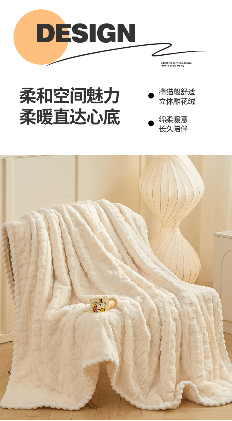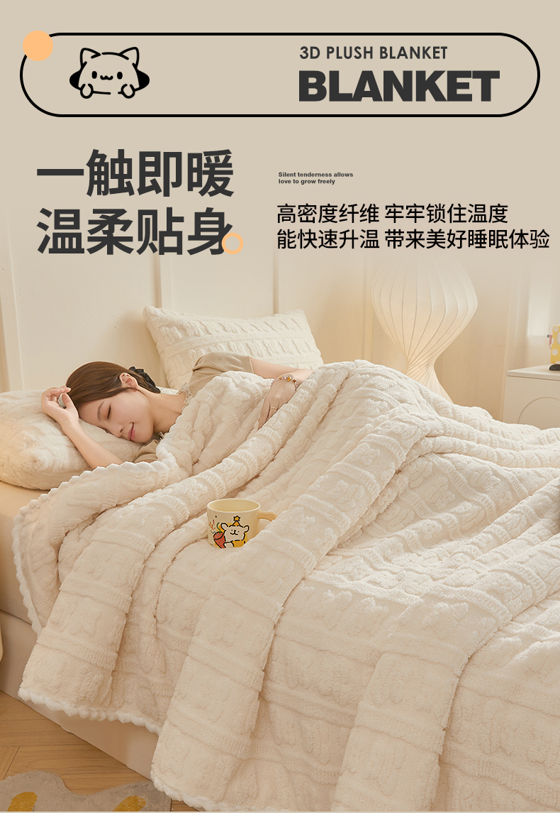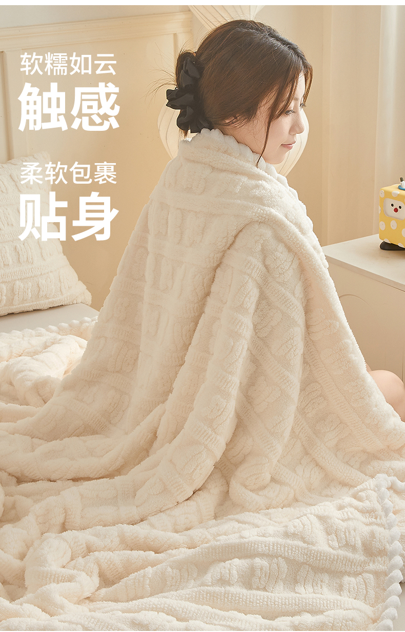 世纪绒品 2025新款A类立体牛奶绒雕花绒单层毛毯毯子-多宝熊 多宝熊 月牙白