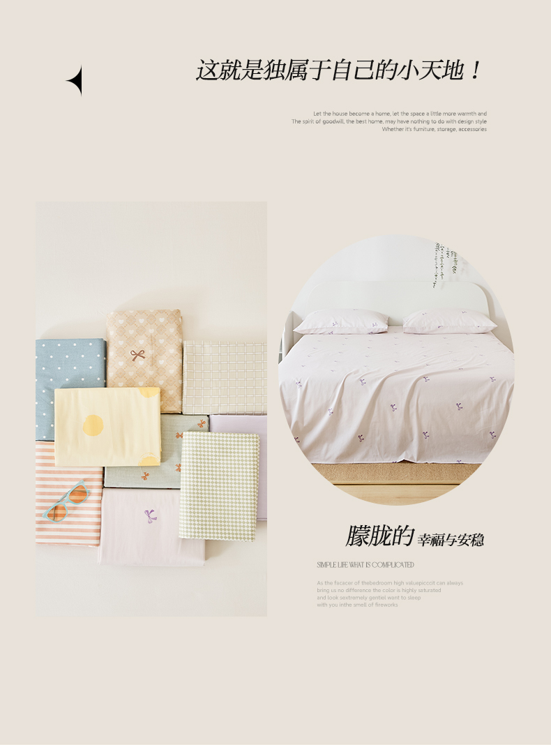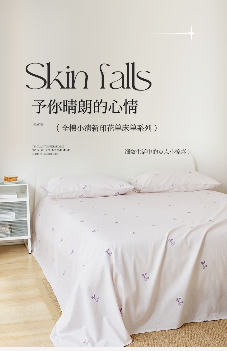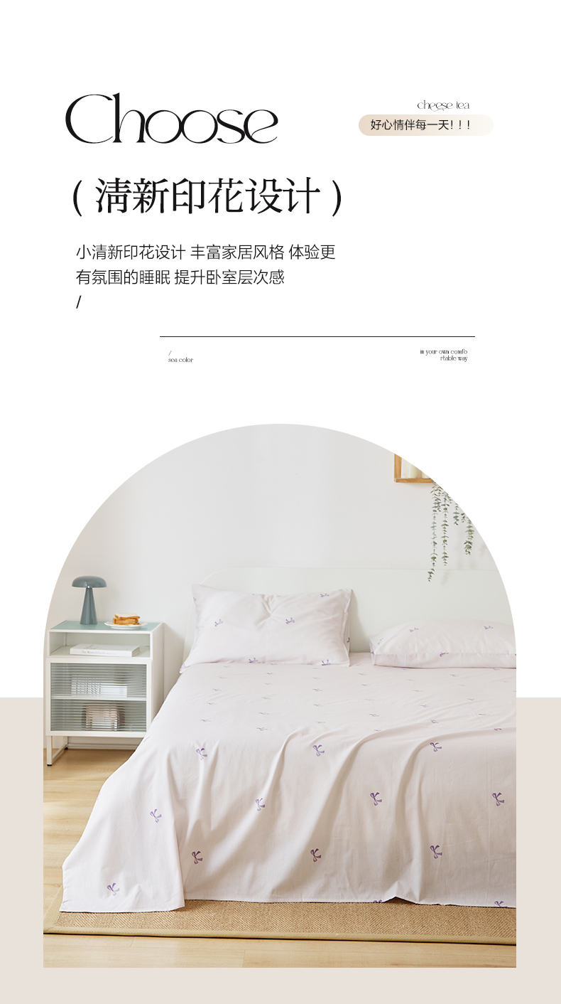 EH家居 2025新款全棉小清新印花单床单-织光系列 紫色蝴蝶结
