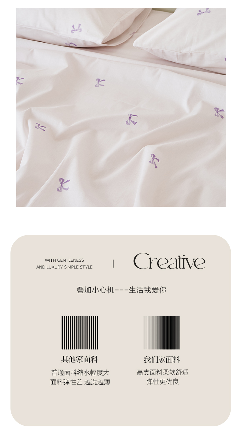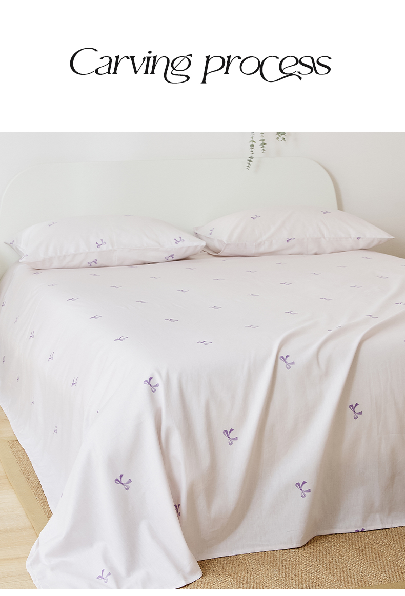 商品名称:EH家居 2025新款全棉小清新印花单床单-织光系列 紫色蝴蝶结