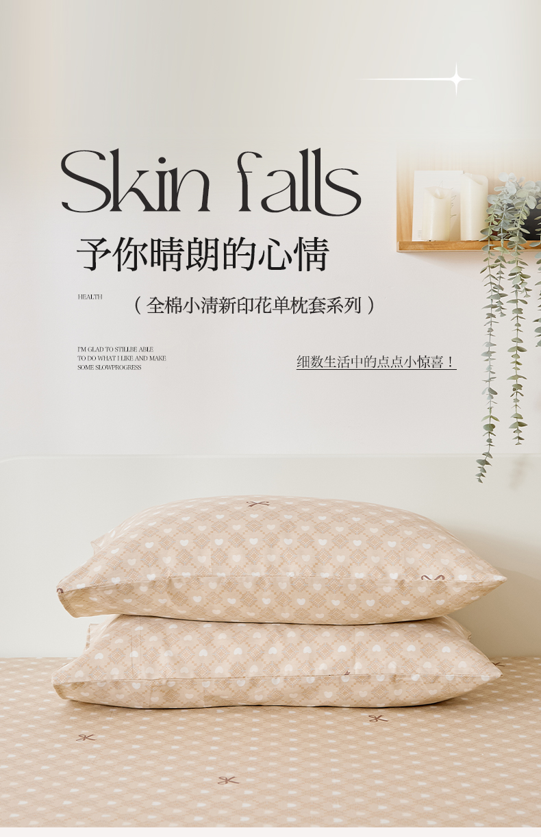 EH家居 2025新款全棉小清新印花单枕套-织光系列 甜心结