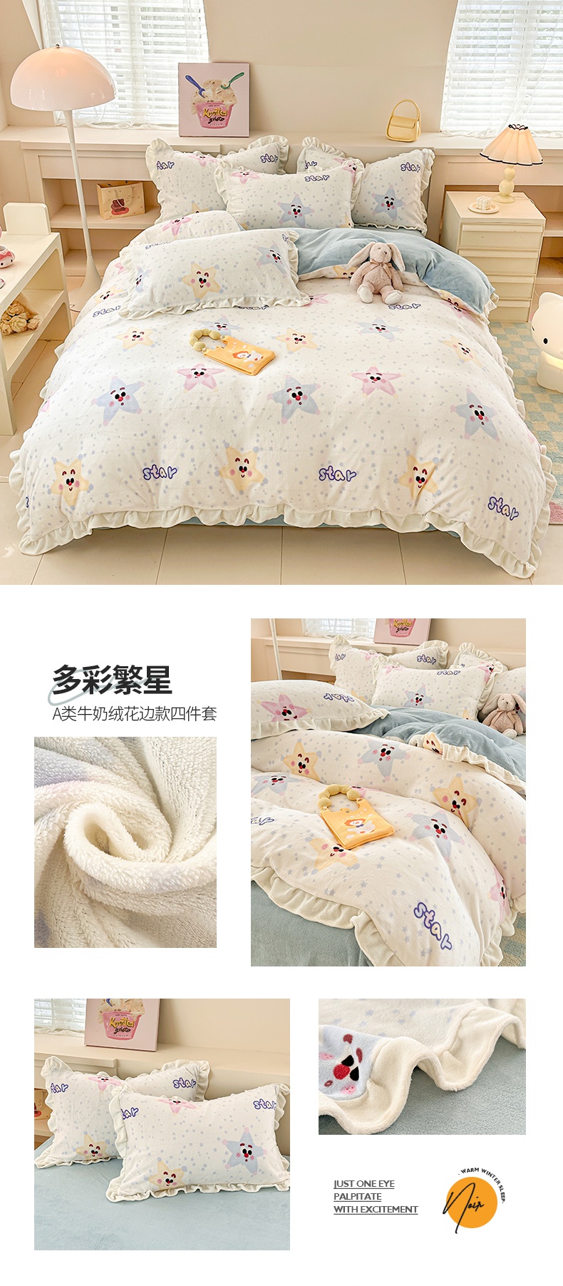 当前位置: 91家纺网 > 商品网购 > 床品套件 > 四件套 > 牛奶绒四件套 > 懒猫家纺 2025新款韩版牛奶绒四件套 小星愿