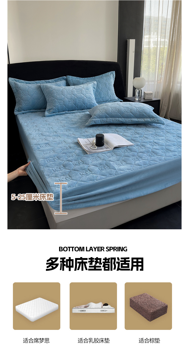 7V 2025新款牛奶绒床笠 蓝色