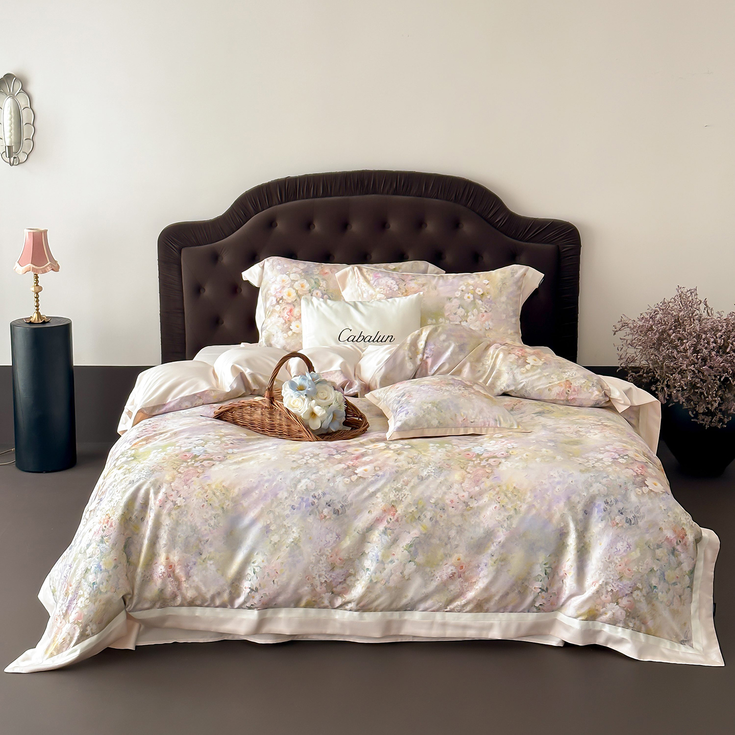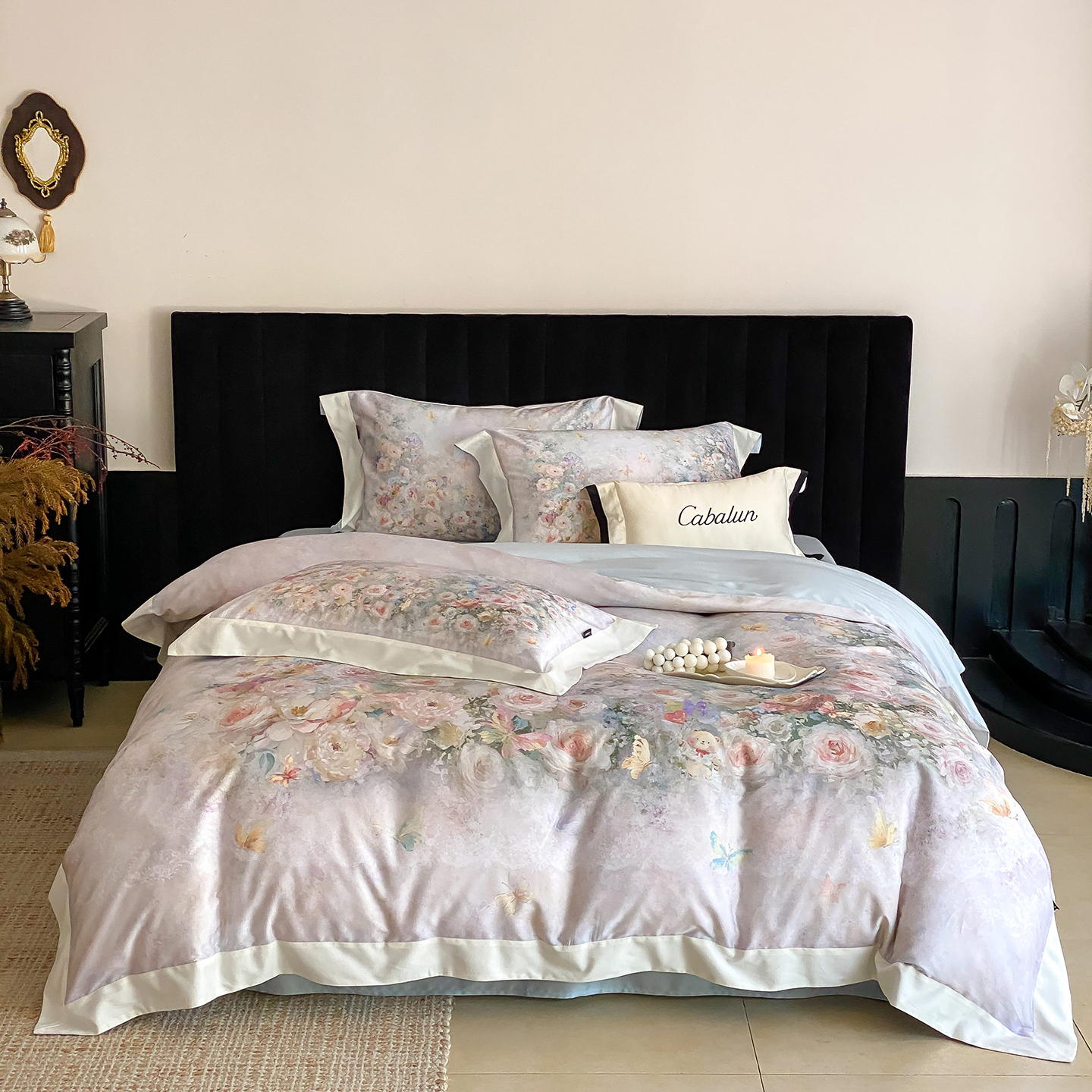 (总)卡巴伦2025新款60兰精天丝夏被四件套,晨露花园粉,晨露花园蓝