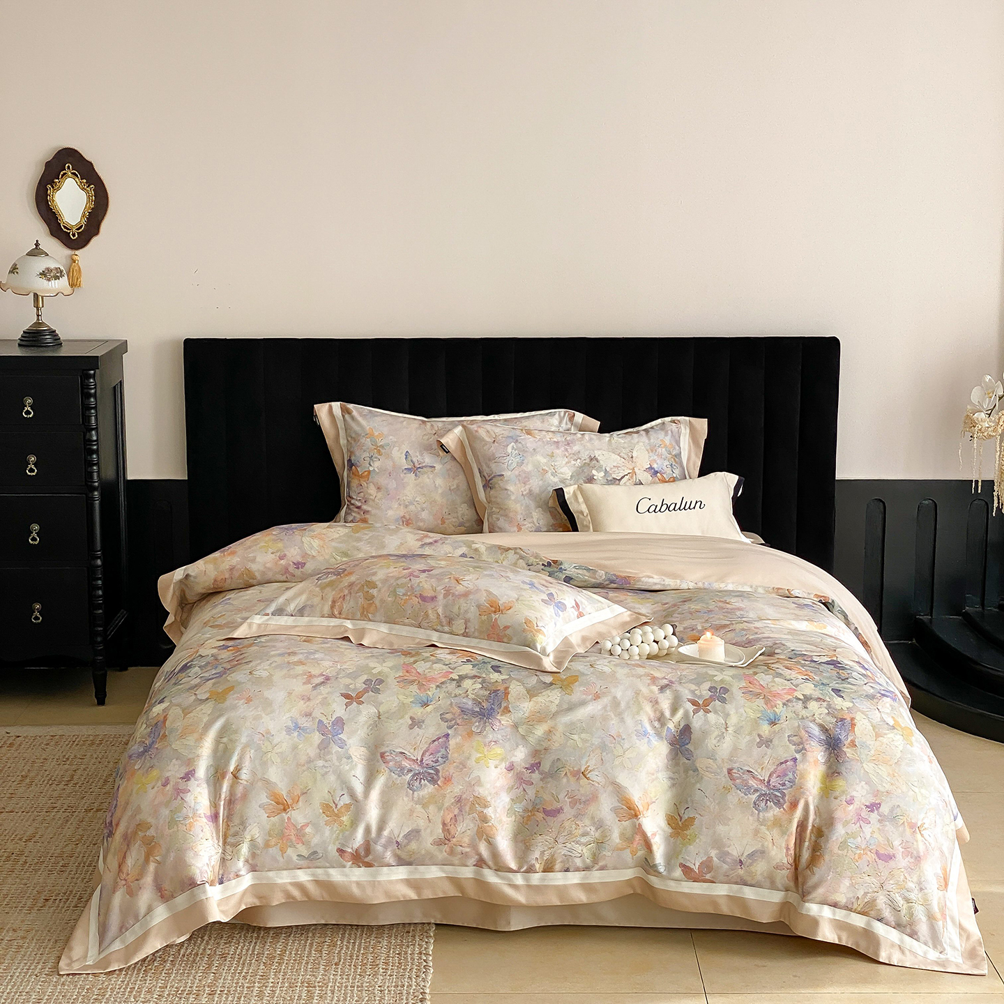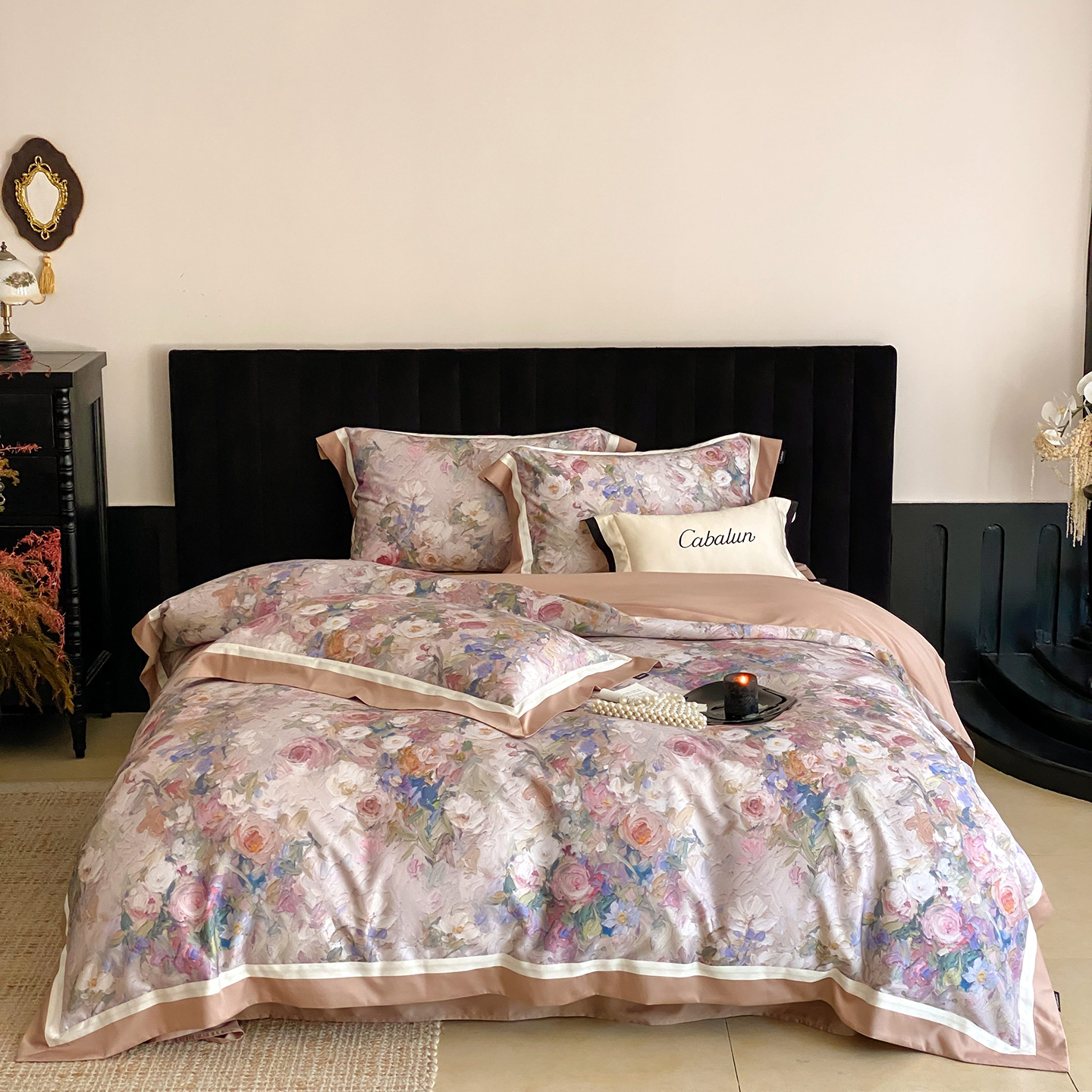 商品名称:卡巴伦家纺 2025新款超细旦天丝棉数码印花四件套-花卉(控价328) 碟影(暖玉)