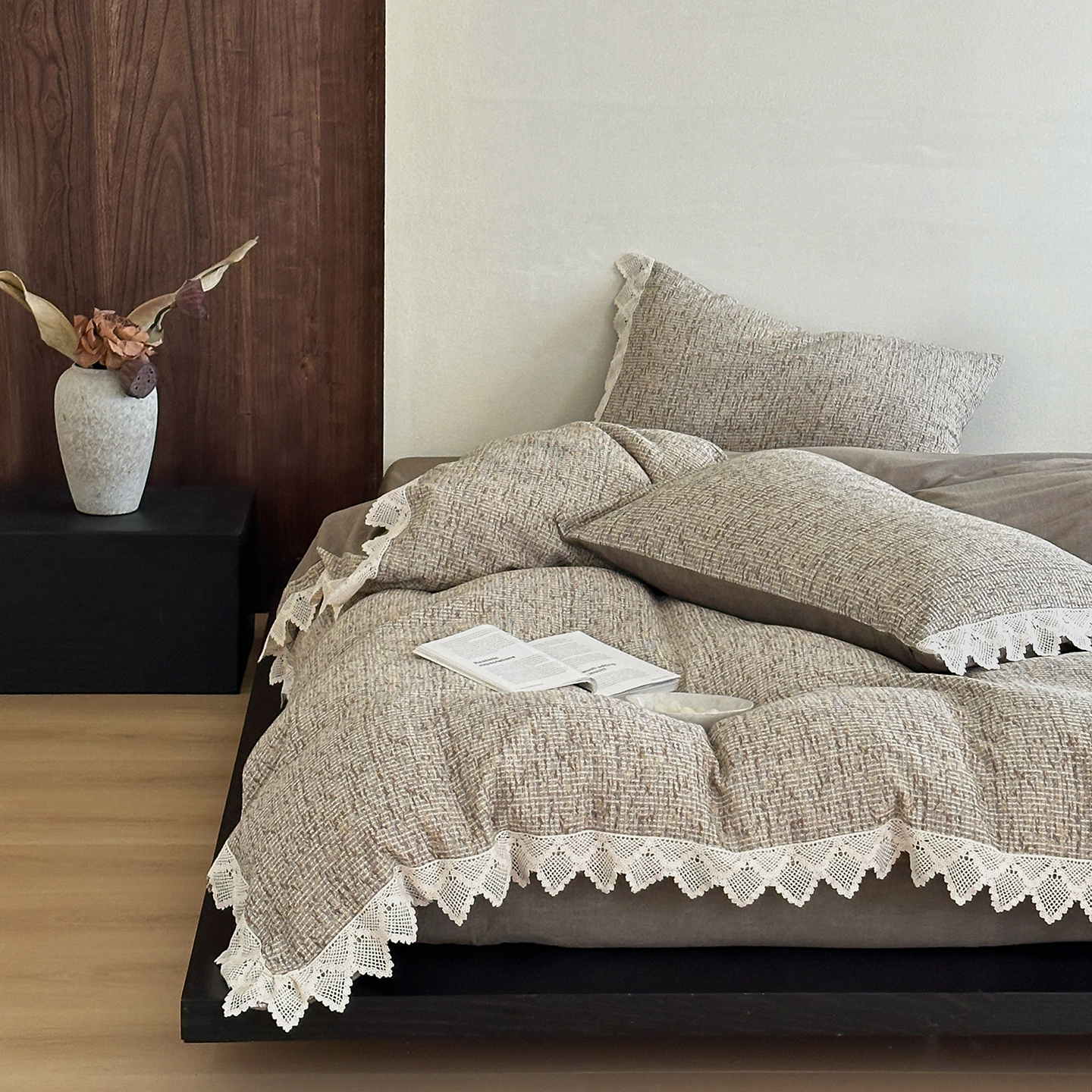 (总)月夏 2025新款全棉纯棉棉麻单被套被套单件-缤纷花语,缤纷花语-灰色,缤纷花语-咖色,缤纷花语-米白色