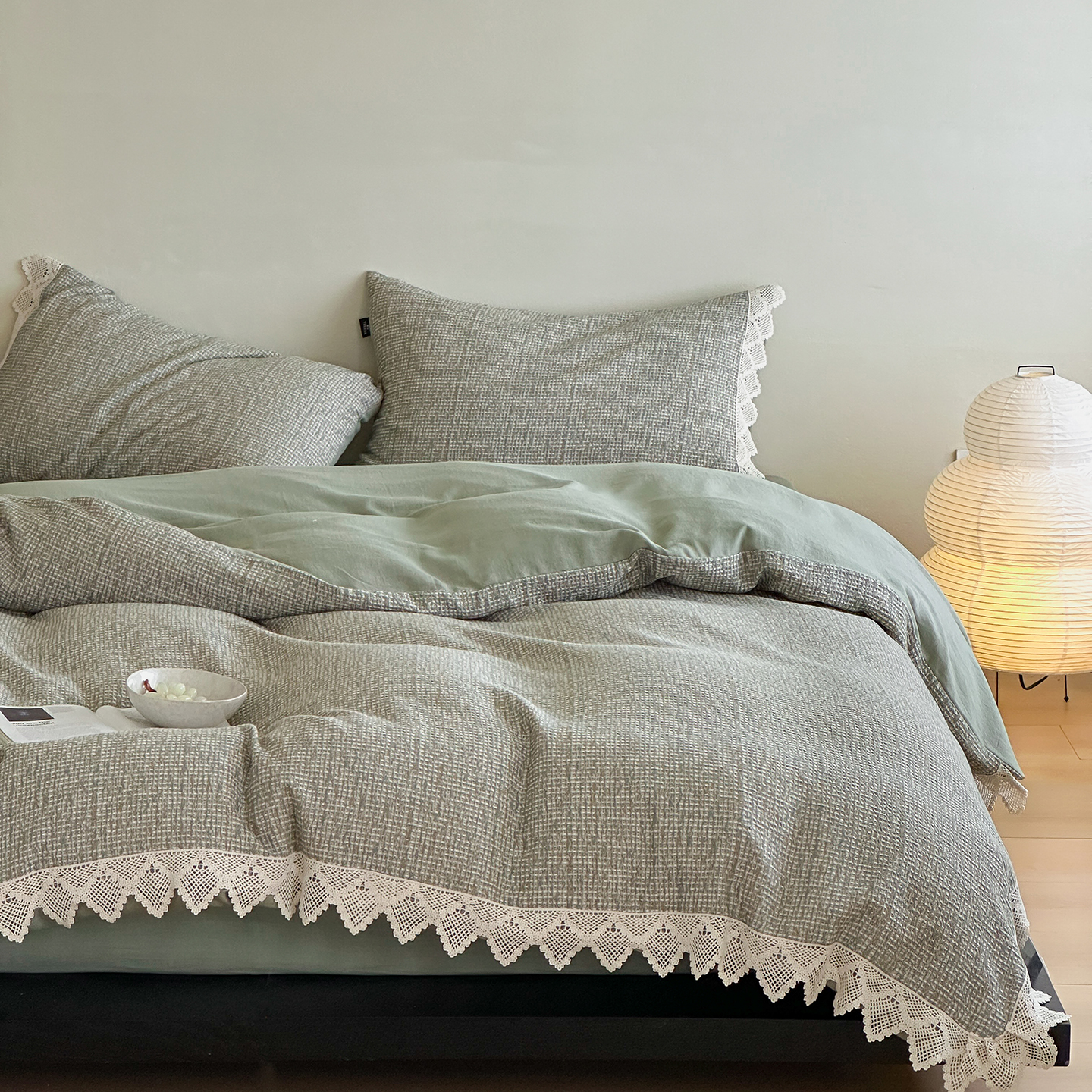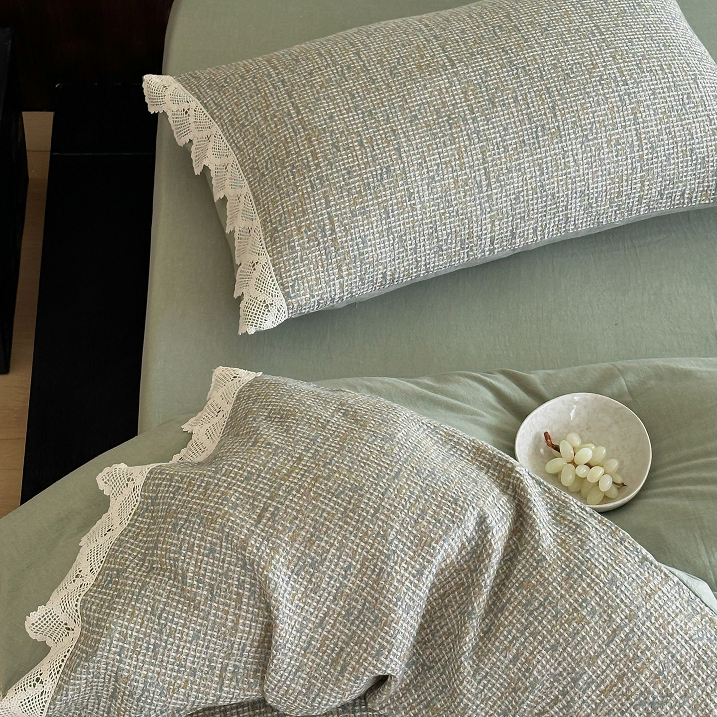 商品名称:月夏 2025新款全棉色织华夫格四件套 绿色