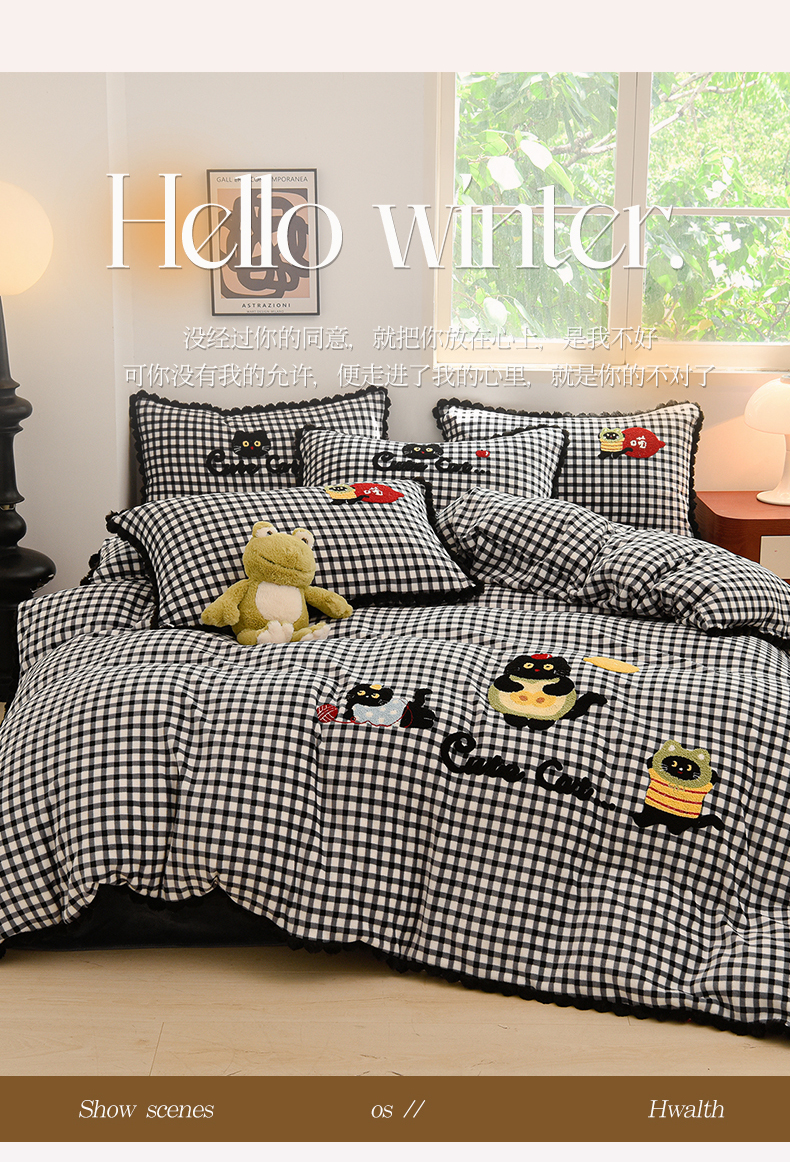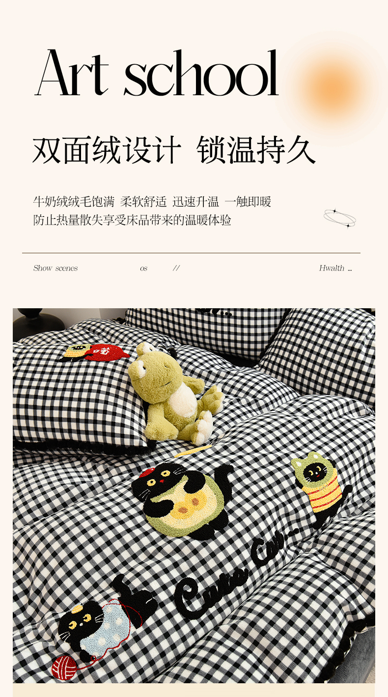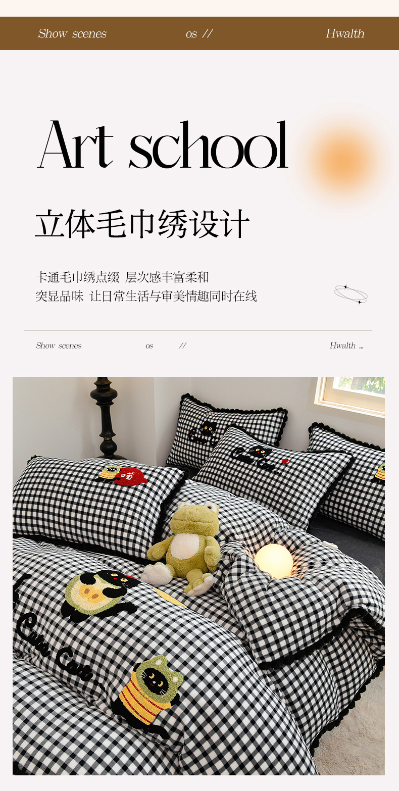 (总)炫拼家纺 2025新款高克重牛奶绒格子卡通毛巾绣加厚四件套-糖宝系列,糖宝-半勺清风,糖宝-喵了个咪,糖宝-甜豆女孩,糖宝-汪星日记,糖宝-星球萌宠,糖宝-元气小猪