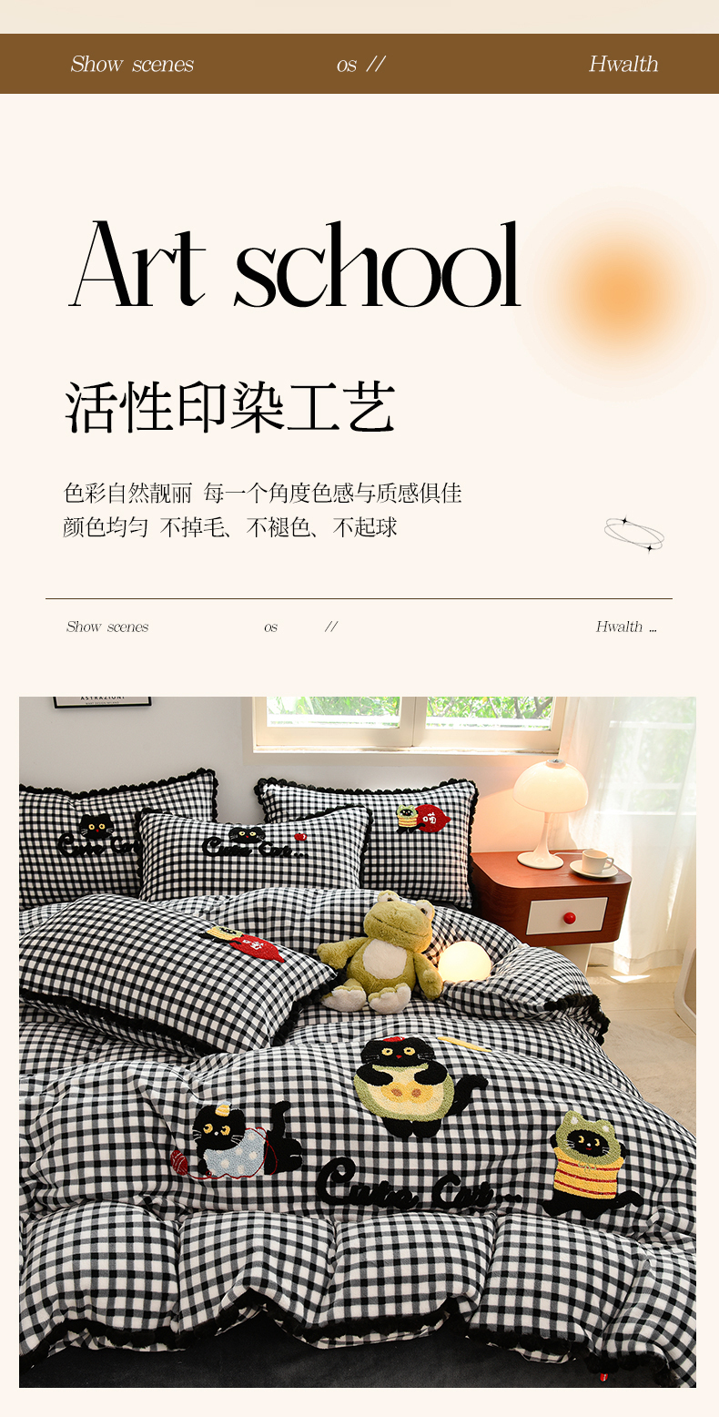 (总)炫拼家纺 2025新款全棉磨毛卡通贴布绣加厚毛巾绣纯棉四件套-曲奇系列,曲奇-苹果狗,曲奇-Good卡皮,曲奇-波点猫,曲奇-好朋友,曲奇-红军熊猫,曲奇-举高高,曲奇-晚安猫