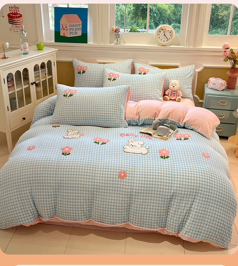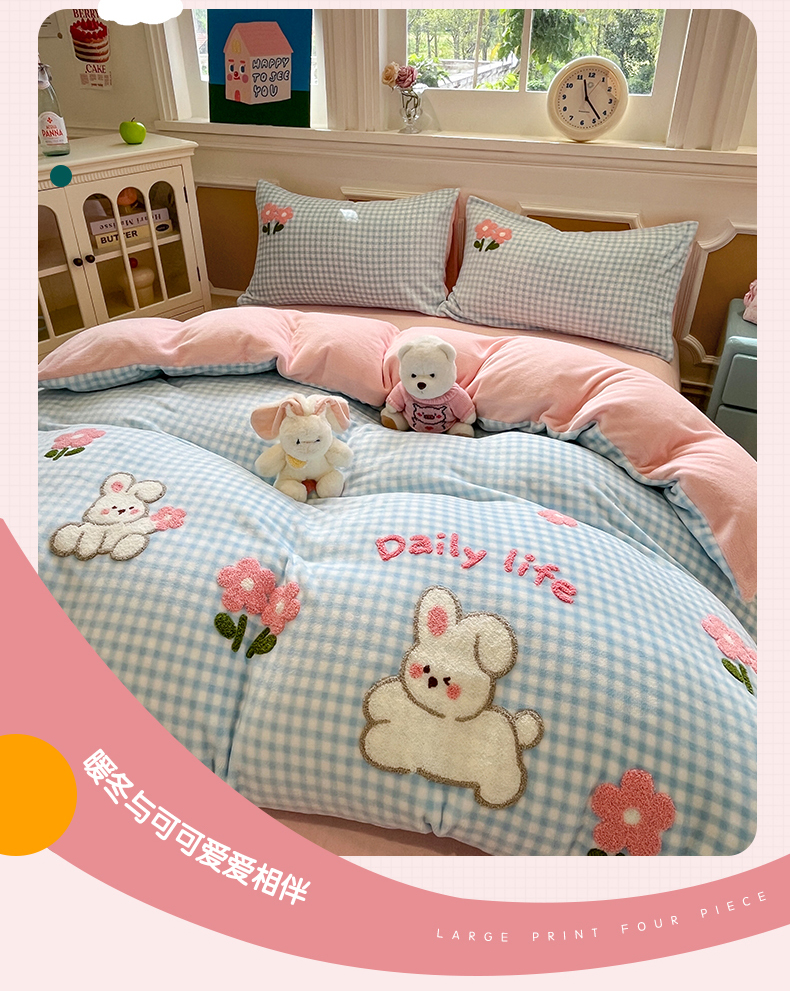 (总)优迈 2025秋冬新款卡通牛奶绒泡泡绒印花花卉兔毛四件套,爱心泡泡-咖,爱心泡泡粉,粉色空间,蝴蝶-粉,蝴蝶灰,灰色空间,梦幻星空,蔷薇花,田园生活,熊猫点点-咖,熊猫点点-绿