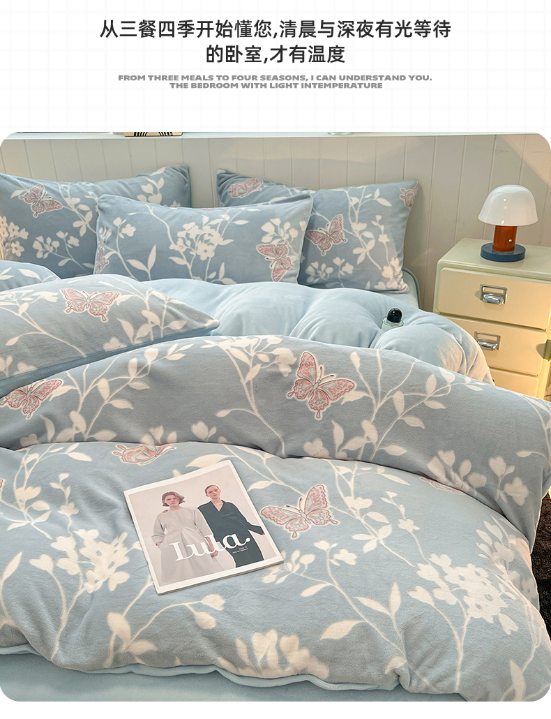 优迈 2025新款牛奶绒雕花四件套 蝶语蓝韵