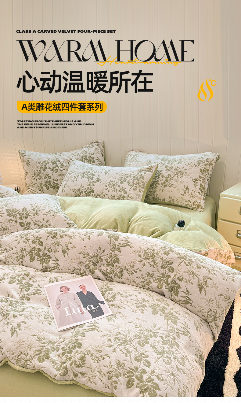 商品名称:优迈 2025新款牛奶绒雕花四件套 青芜花意
