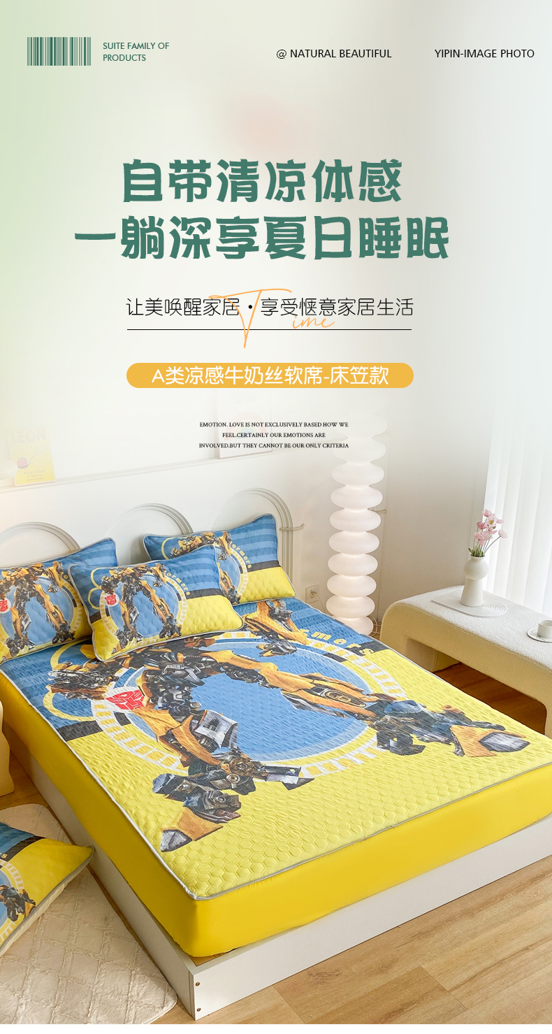 • 91家纺网 家纺一手货源 找家纺 一电 2025新款牛奶丝凉席床笠可水洗凉感丝凉席学生宿舍单人裸睡空调席-系列二 黄蜂机器人