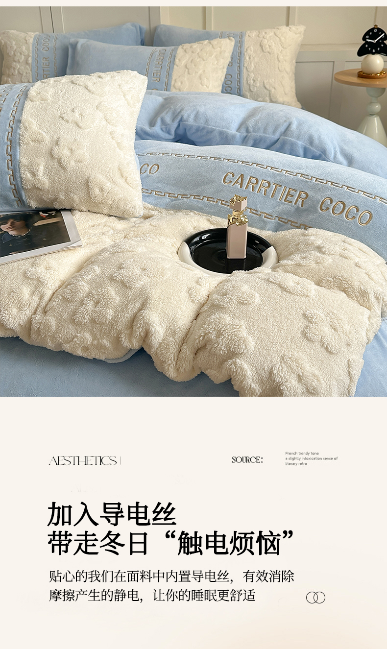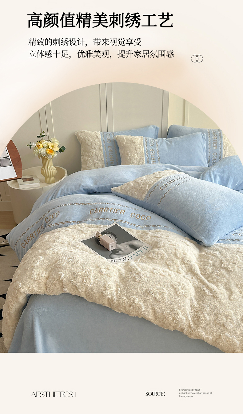 (总)灰鲸 2025新款牛奶绒拼接刺绣四件套-安娜