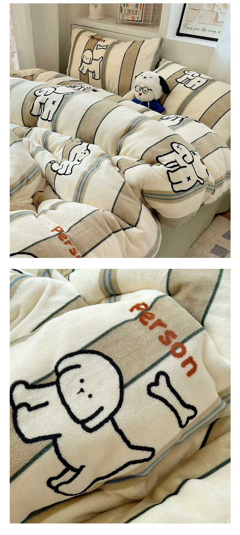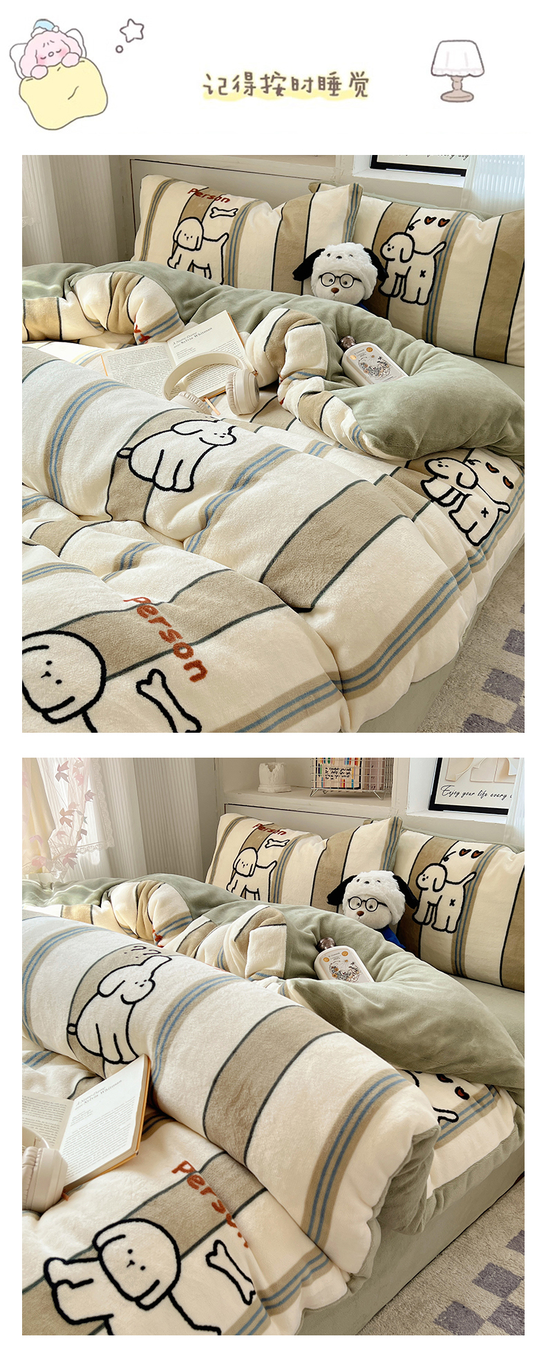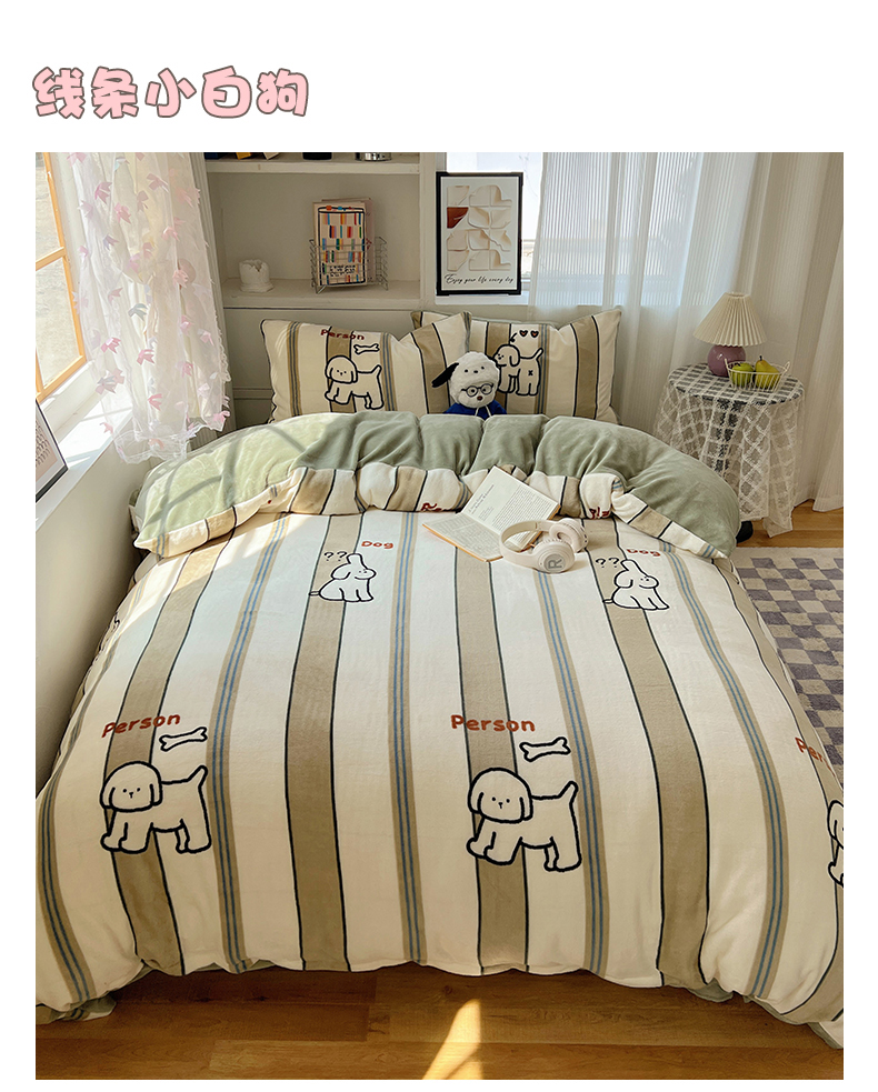当前位置: 91家纺网 > 商品网购 > 床品套件 > 四件套 > 牛奶绒四件套 > 繁花家居 2025新款200克牛奶绒小清新卡通复古风三件套四件套 线条小白狗