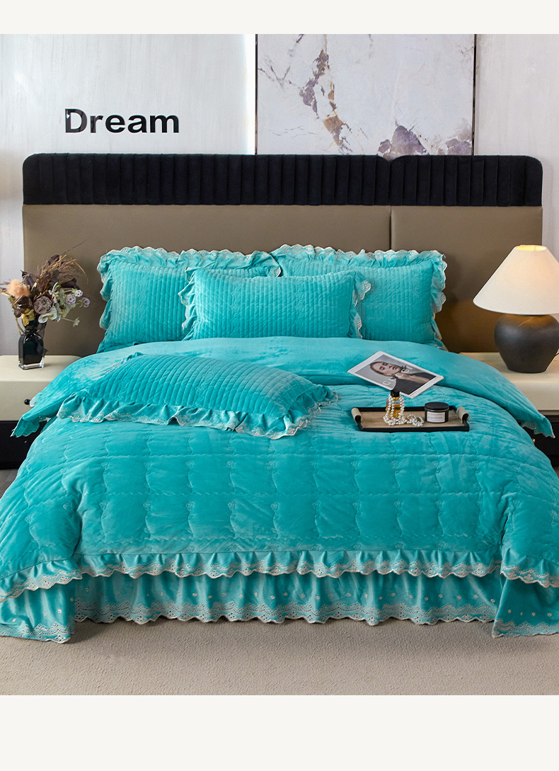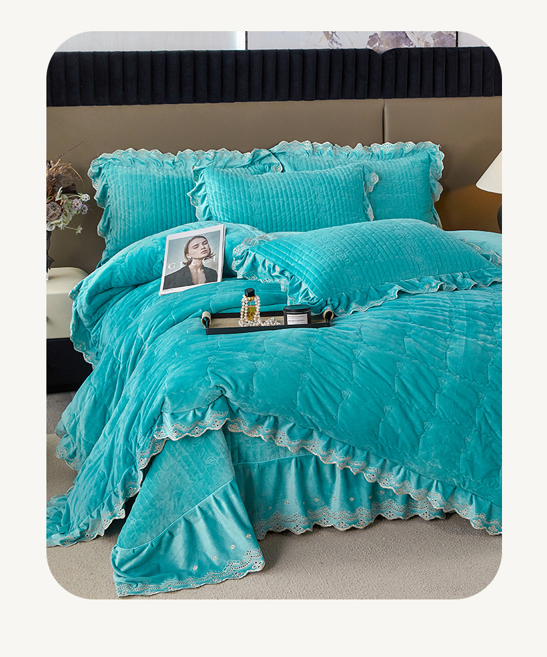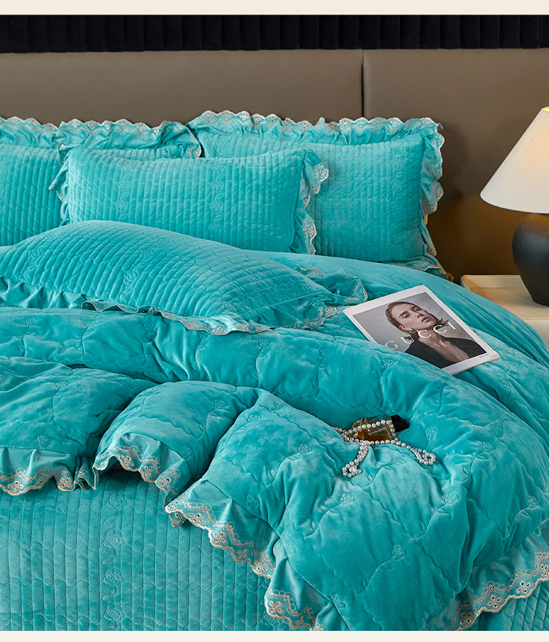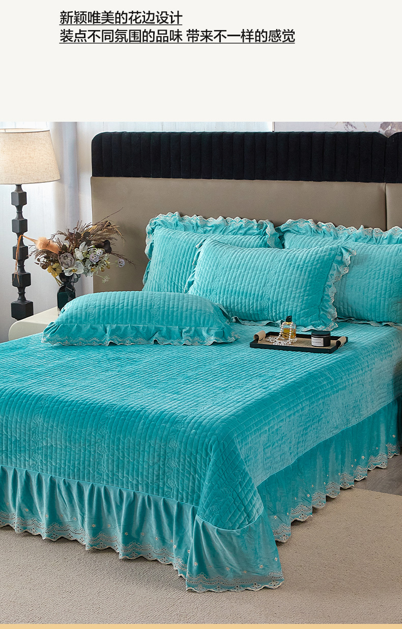 商品名称:青竹苑 2025新款婴儿绒宝宝绒玫瑰刺绣版床盖款四件套 慕达-青