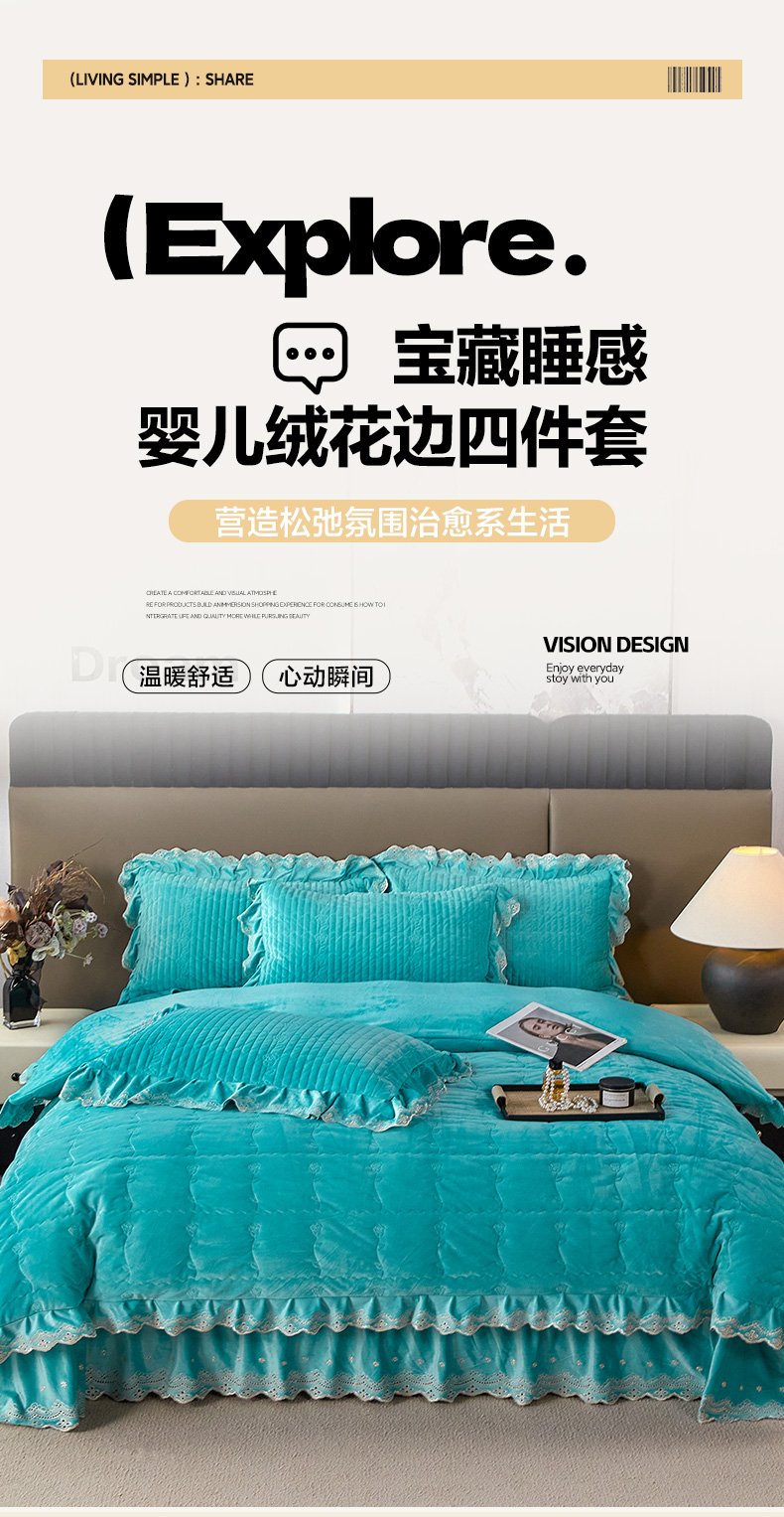 (总)青竹苑 2025新款婴儿绒宝宝绒玫瑰版床盖款四件套,慕达-绿,慕达-红,慕达-青,慕达-深粉,慕达-妍红,慕达-紫