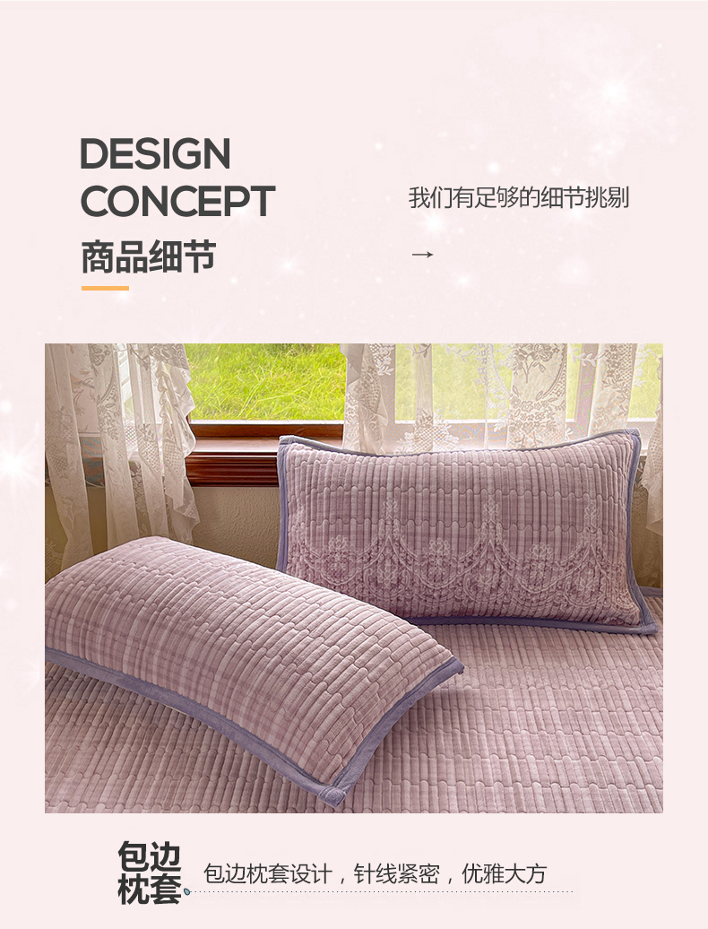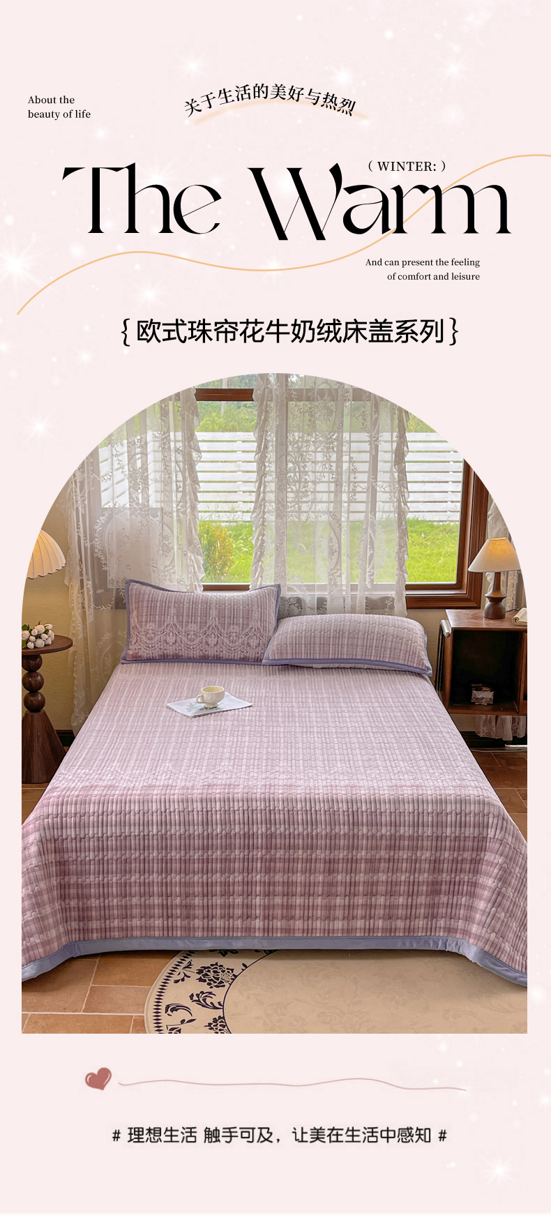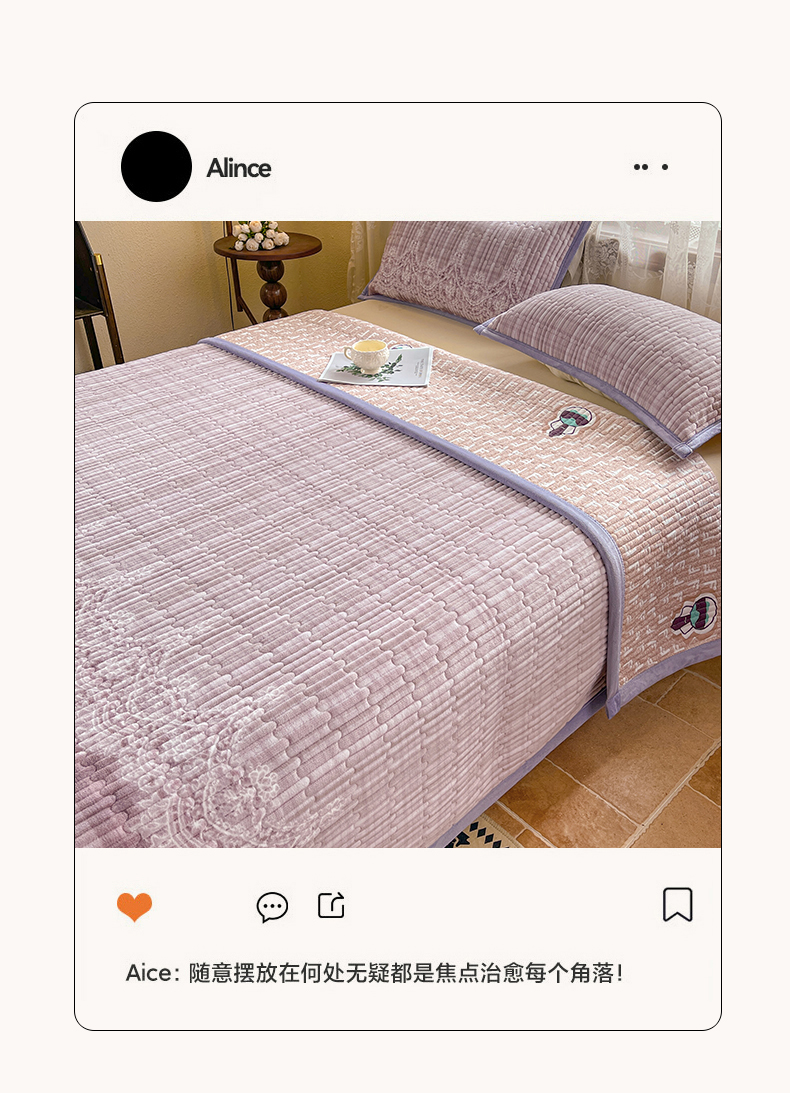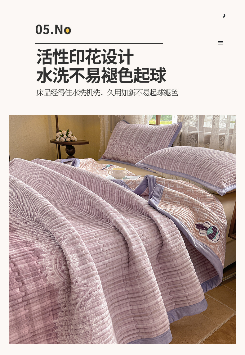 慕木家纺 2025新款A类高克重欧式牛奶绒夹棉床盖珠帘花系列-场景二 珠帘花-紫