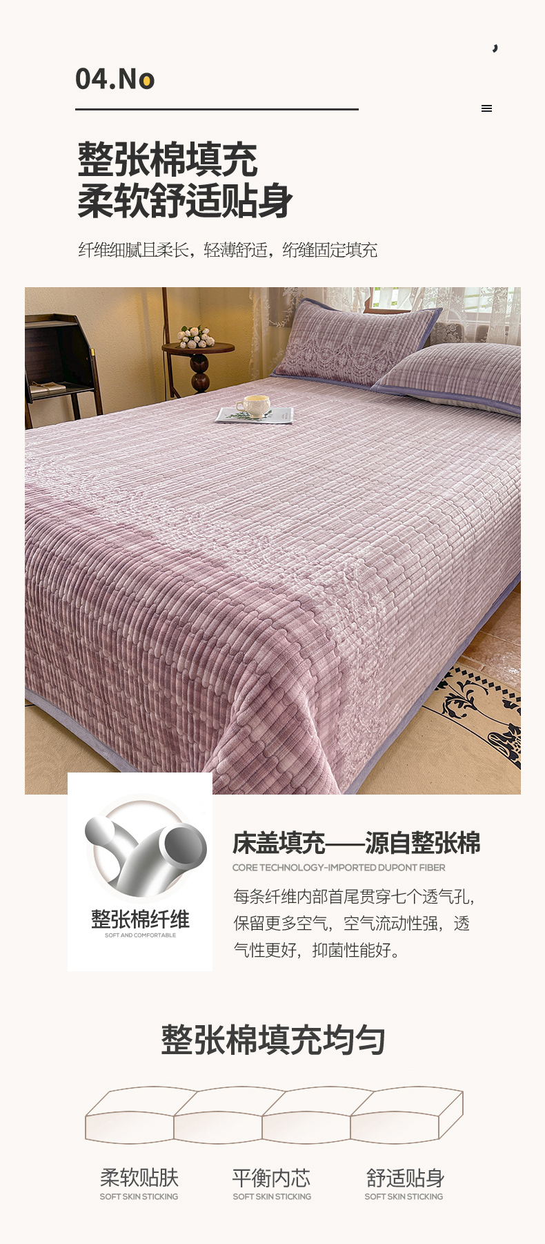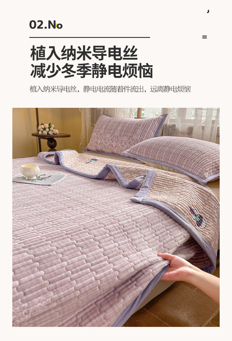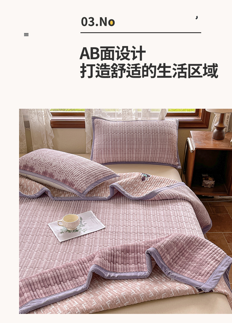 慕木家纺 2025新款A类高克重欧式牛奶绒夹棉床盖珠帘花系列-场景二 珠帘花-紫