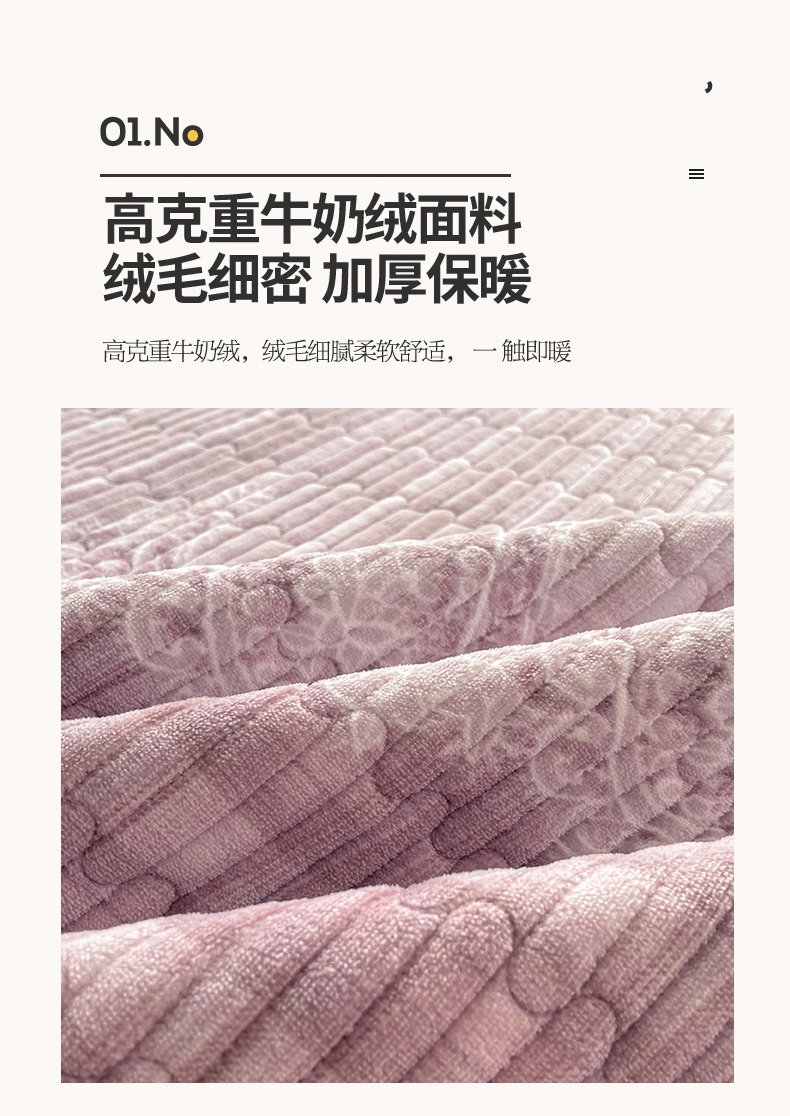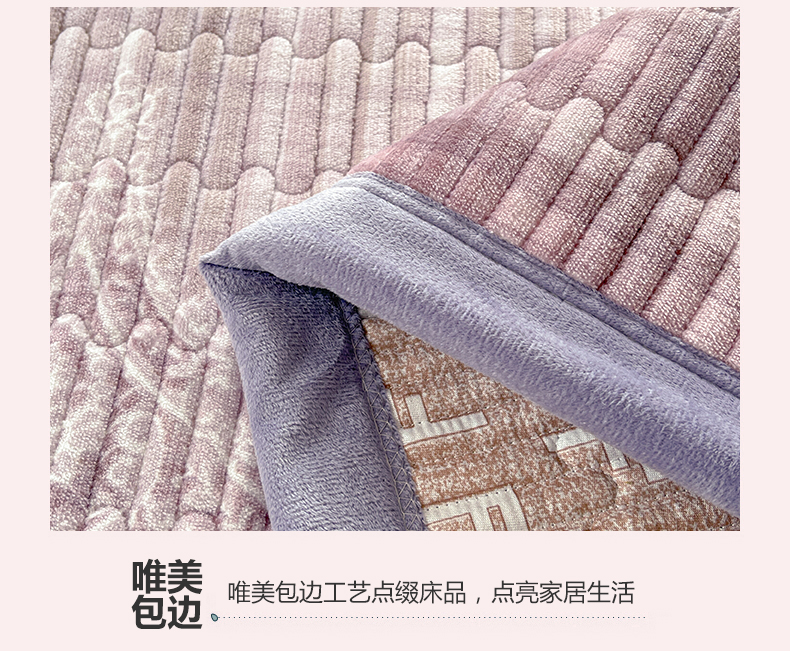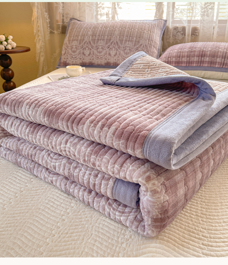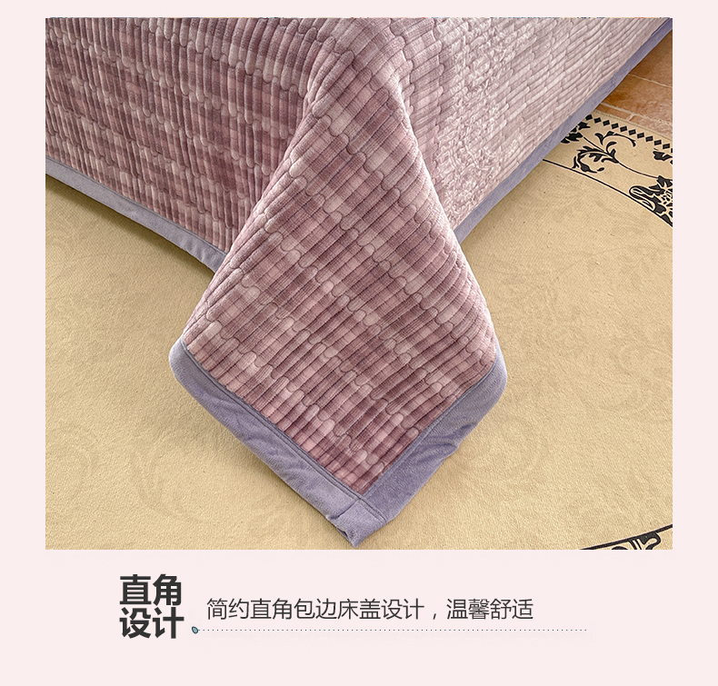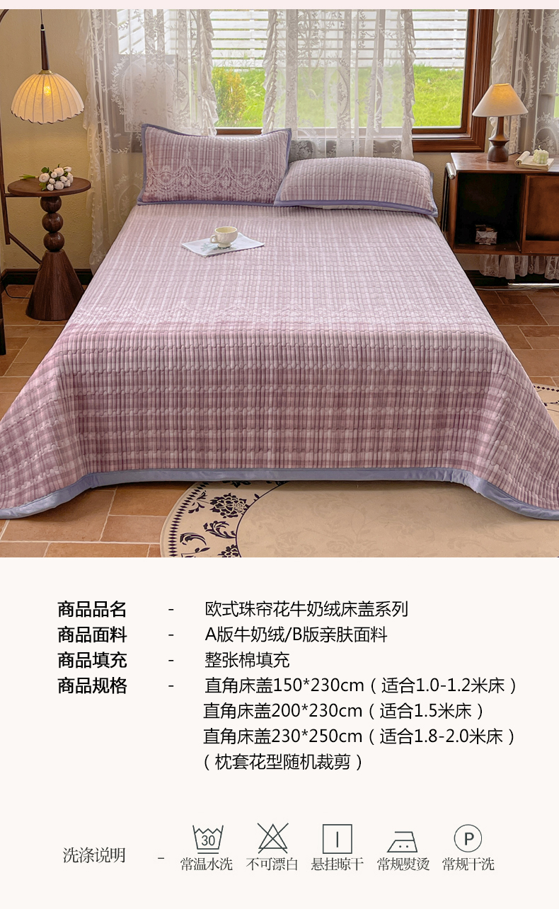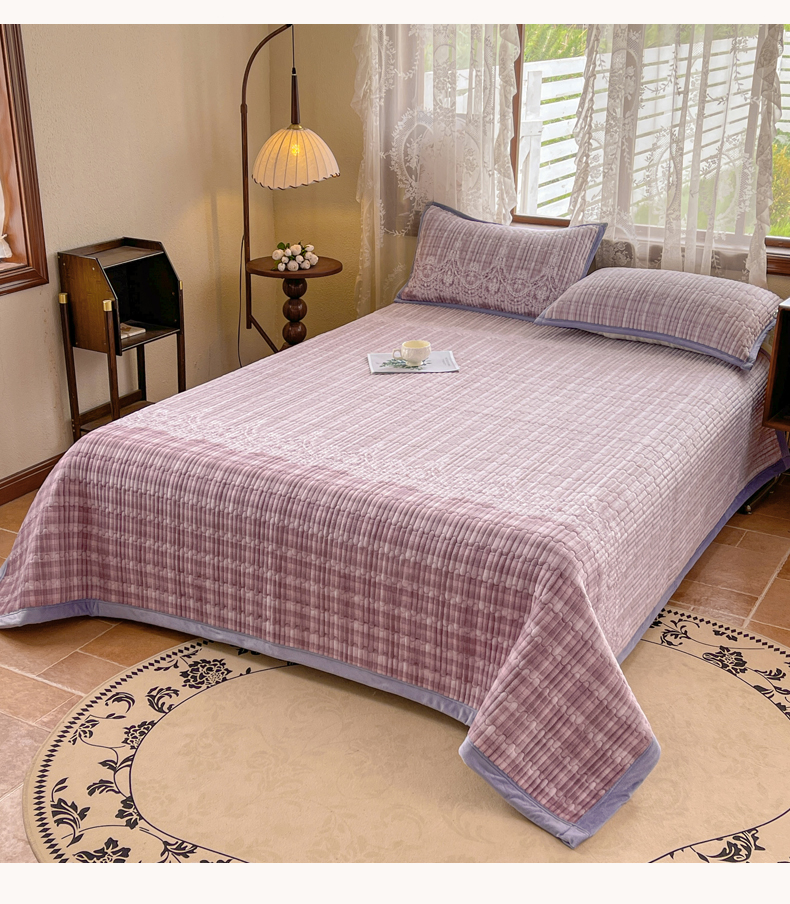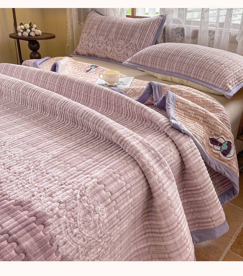 商品名称:慕木家纺 2025新款A类高克重欧式牛奶绒夹棉床盖珠帘花系列-场景二 珠帘花-紫