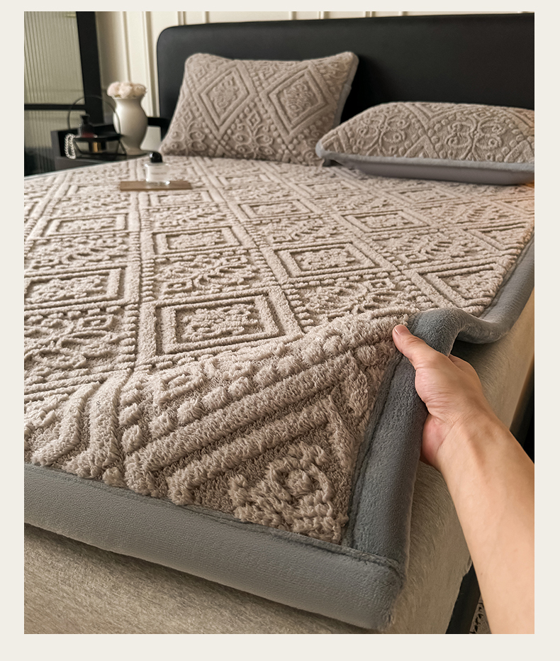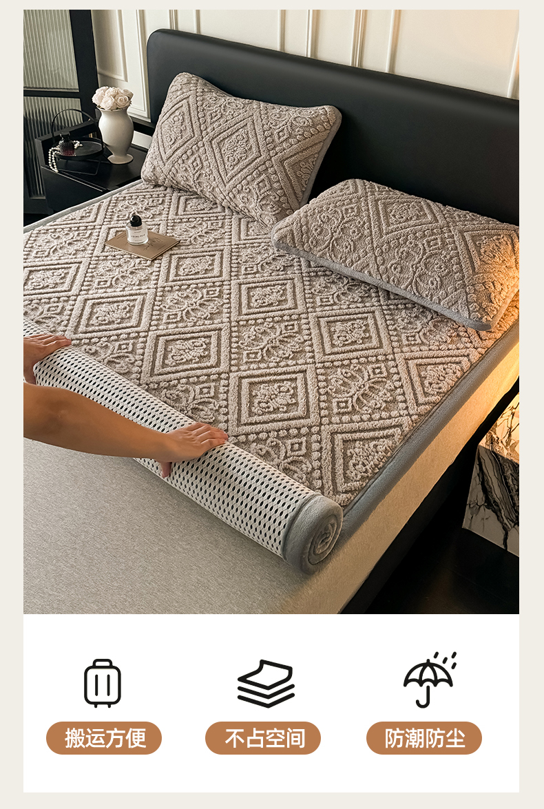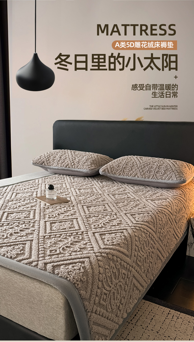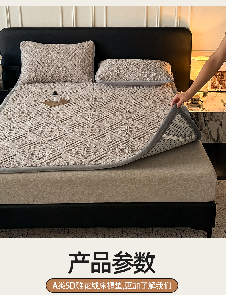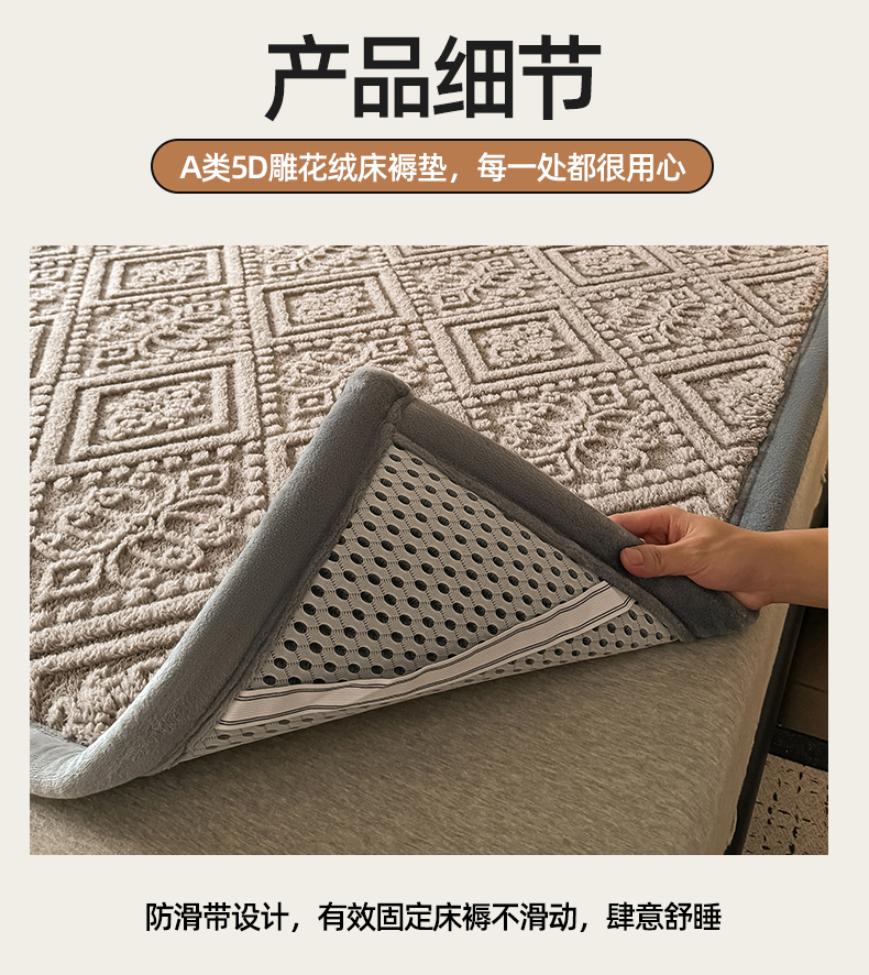 商品名称:鑫姿席业 2025新款5D雕花绒床褥垫床垫 叶菱格-咖