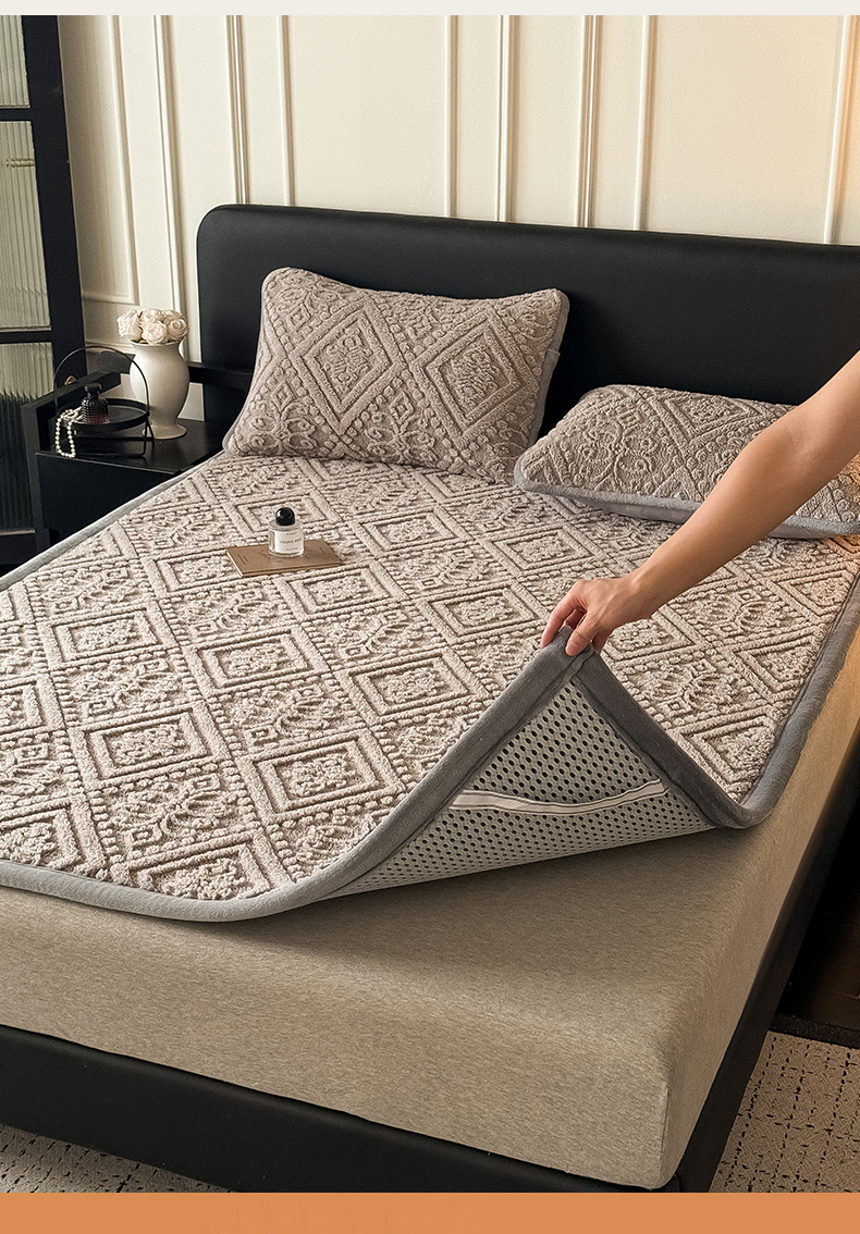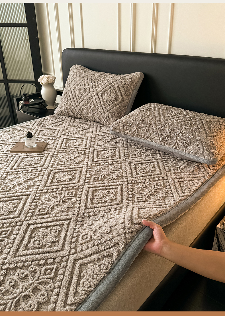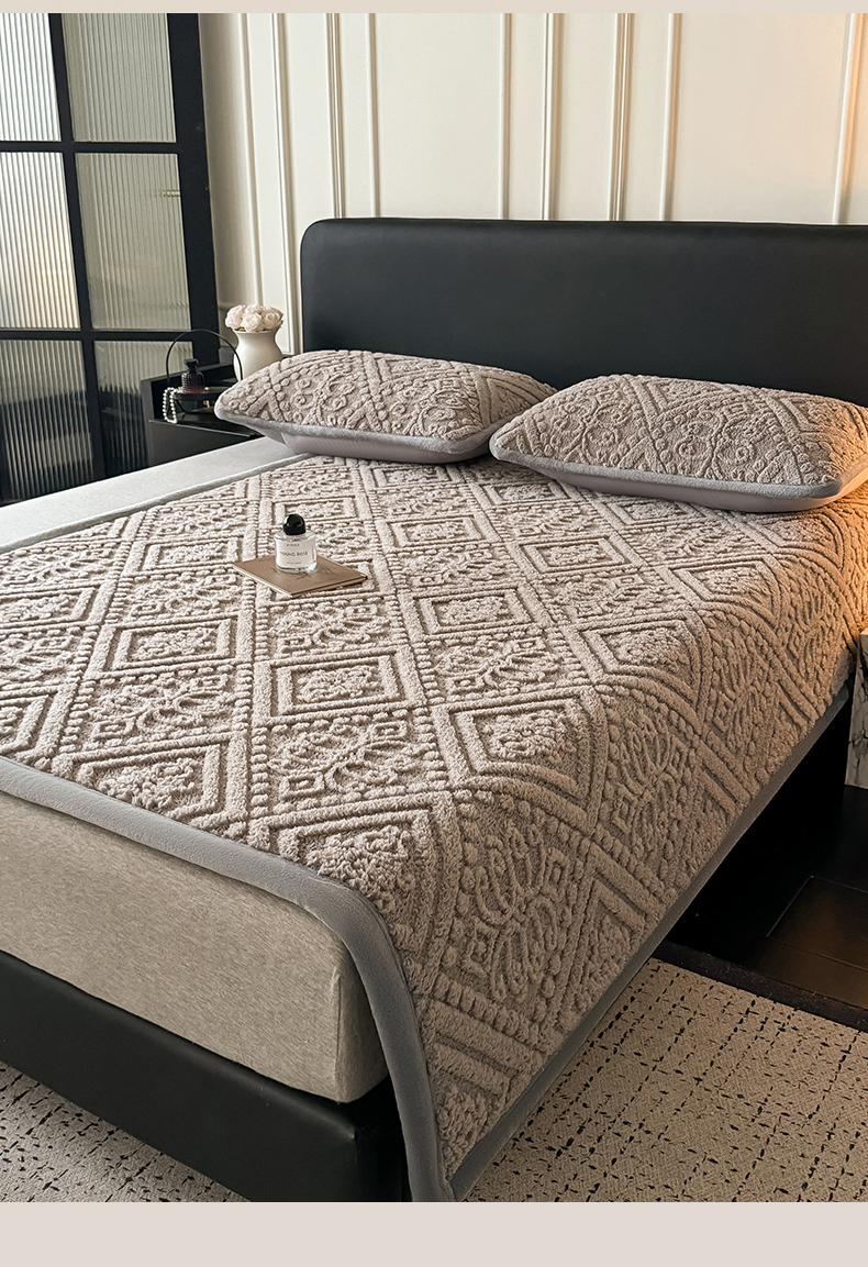 鑫姿席业 2025新款5D雕花绒床褥垫床垫 叶菱格-咖