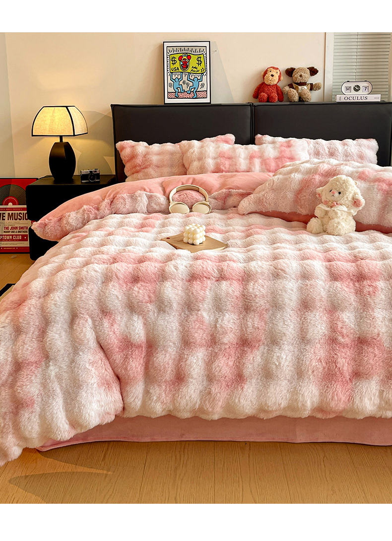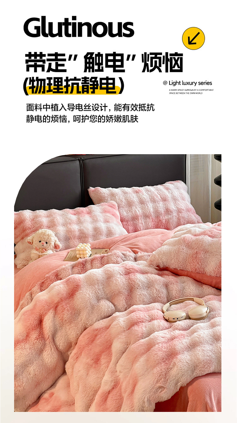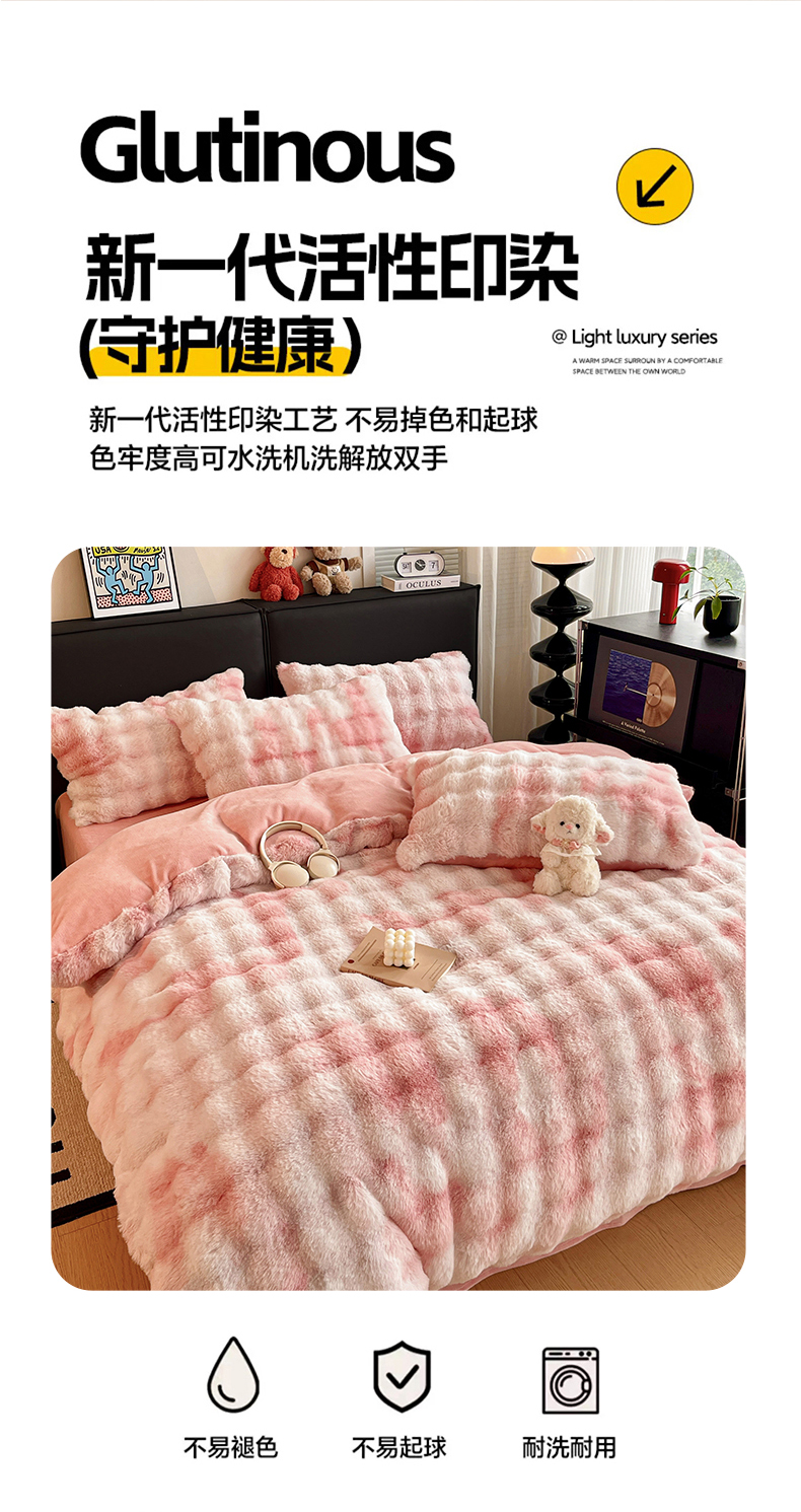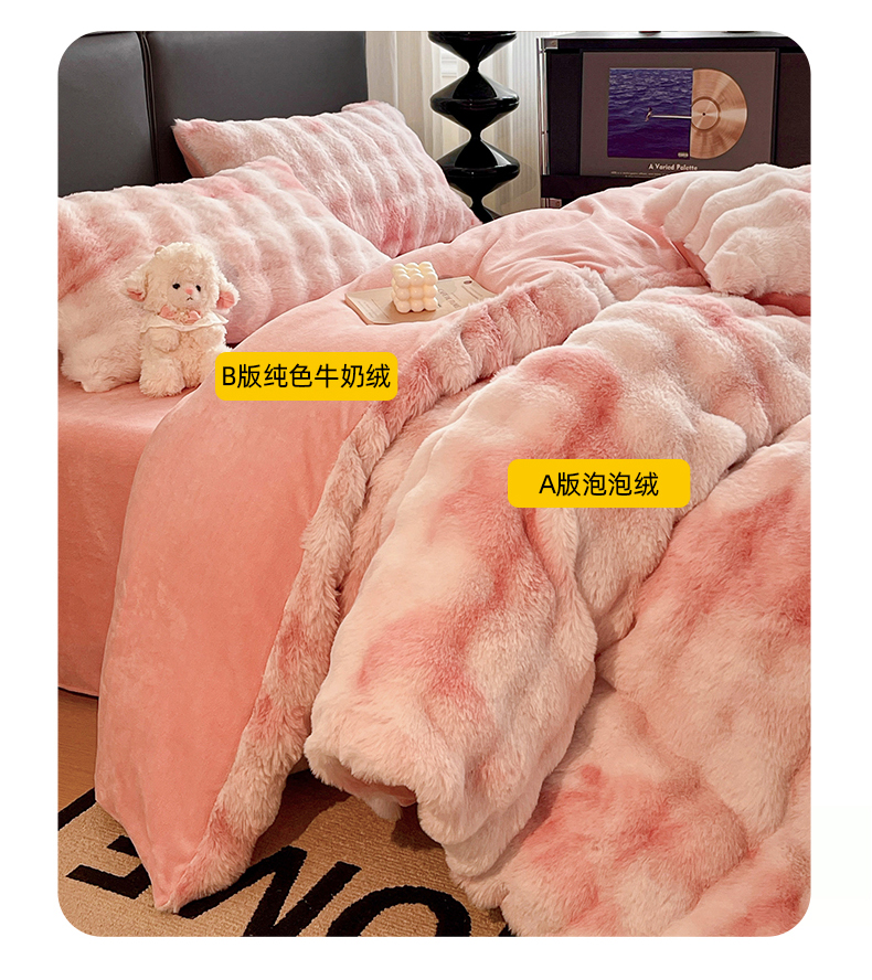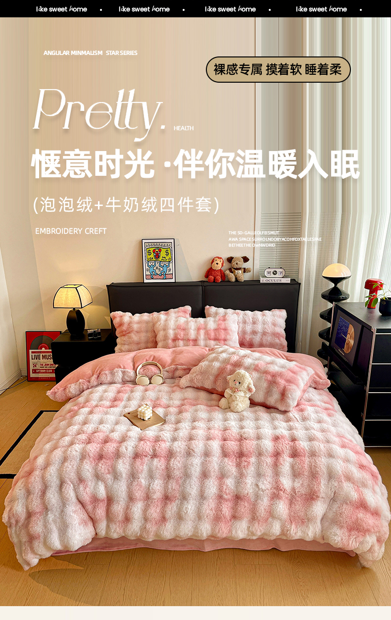商品名称:凯洛奇 2025新款兔毛绒四件套牛奶绒四件套大泡泡兔毛四件套 迷雾幻境-粉