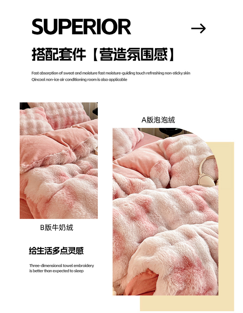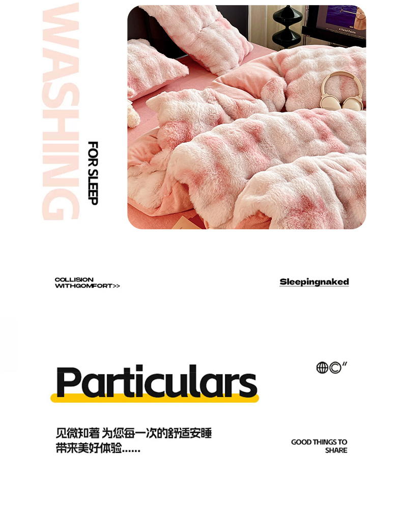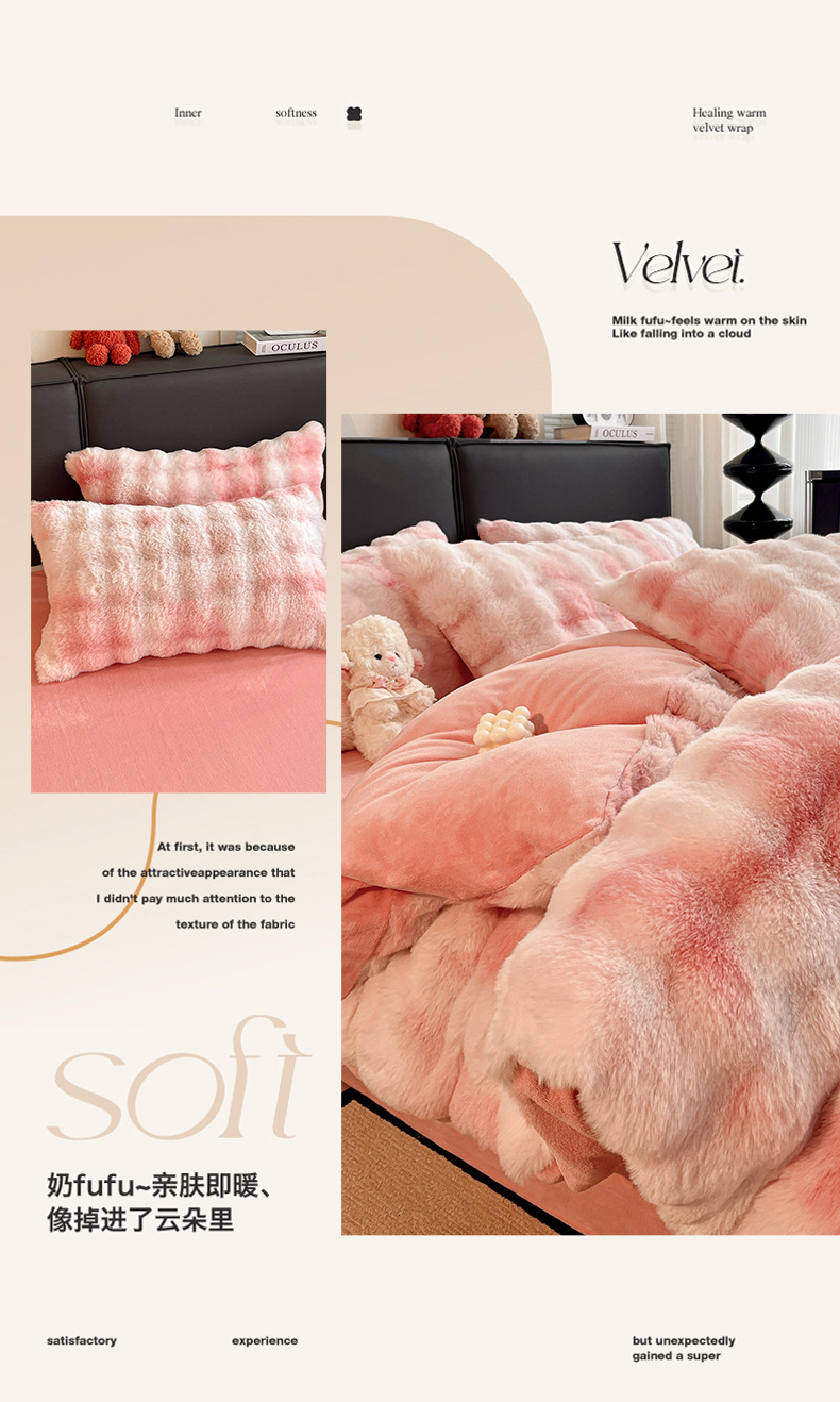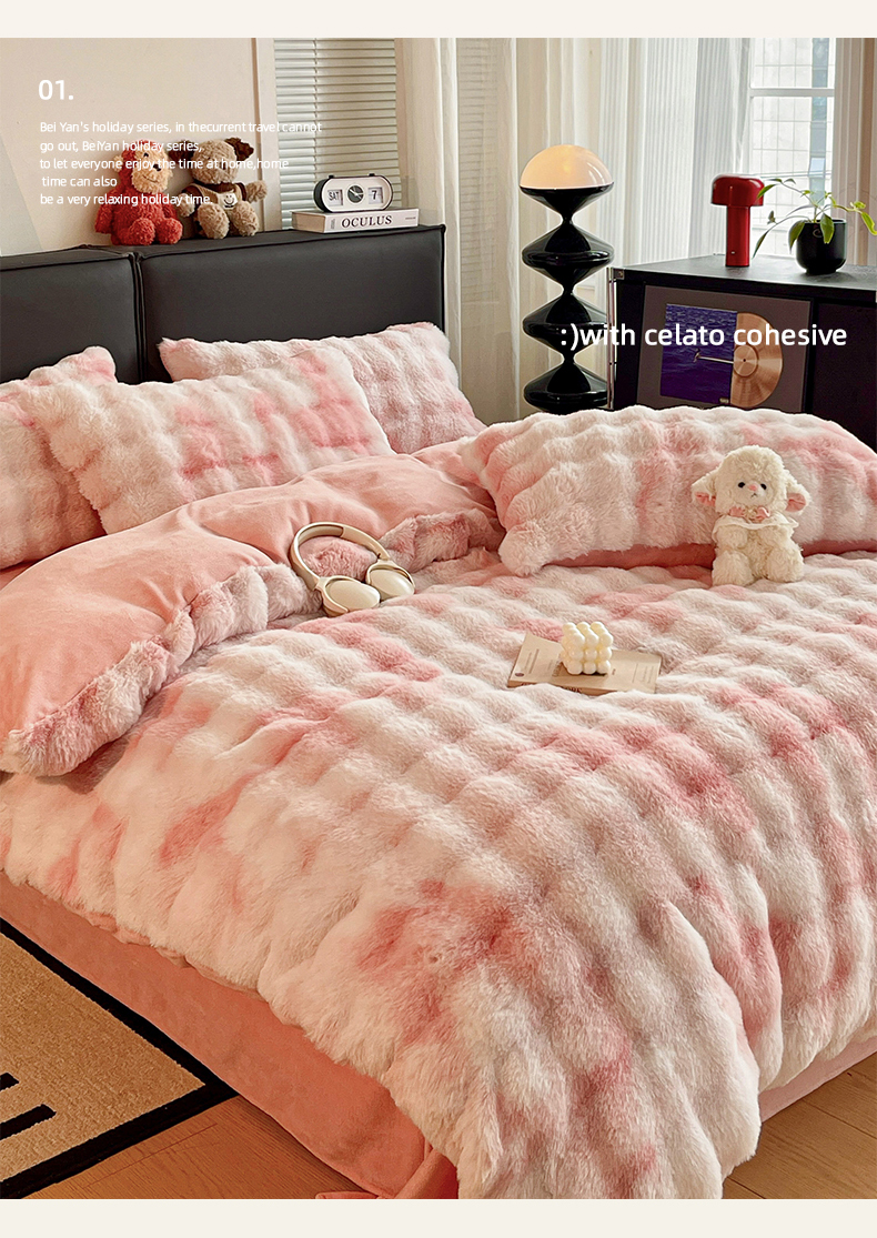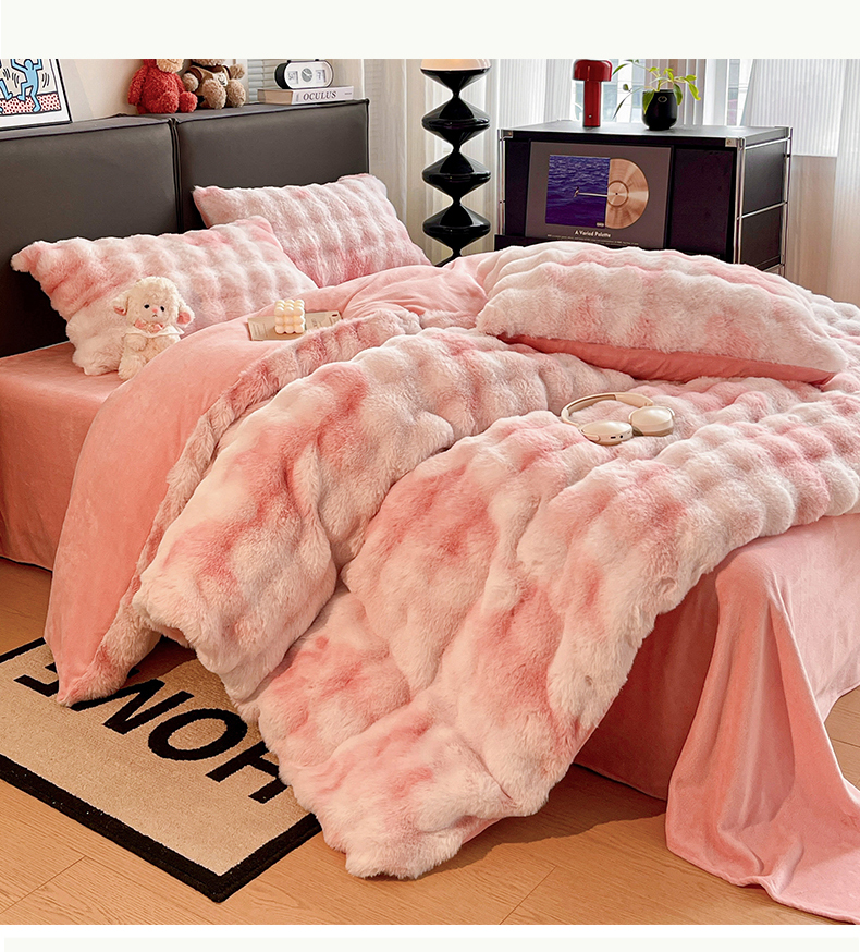 商品名称:凯洛奇 2025新款兔毛绒四件套牛奶绒四件套大泡泡兔毛四件套 迷雾幻境-粉