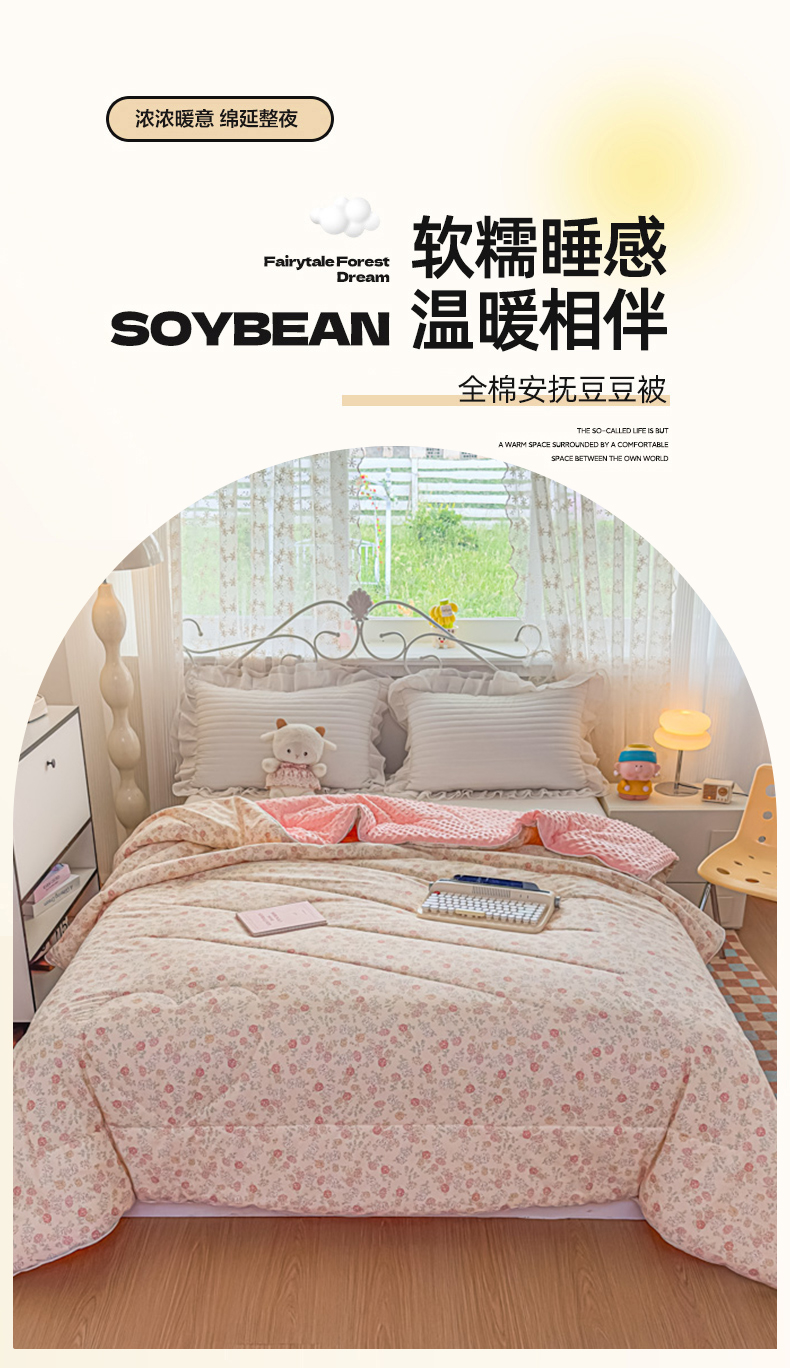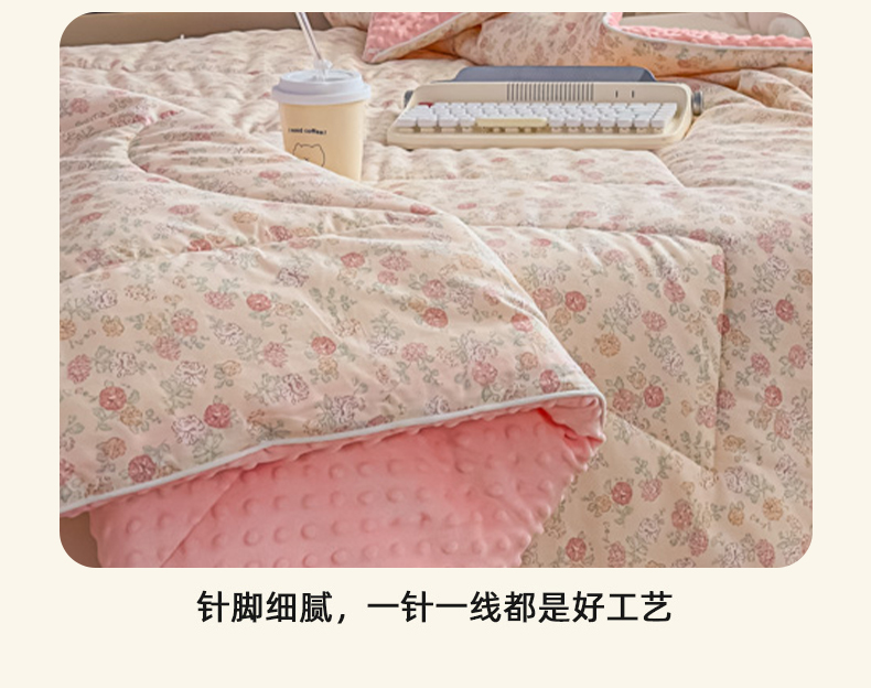 商品名称:青螺家纺 2025新款高密全棉嵌绳宝宝绒春秋豆豆被 支持定制花色和冬被 有量来门市优惠 爱丽花园