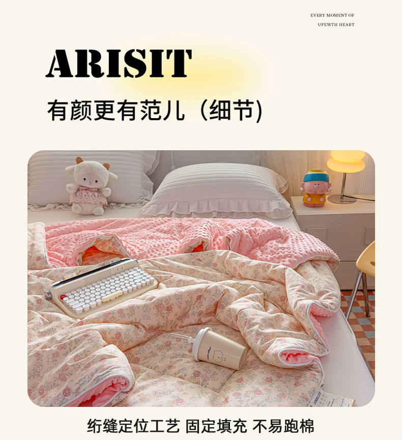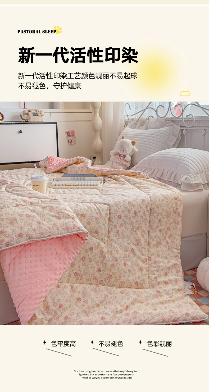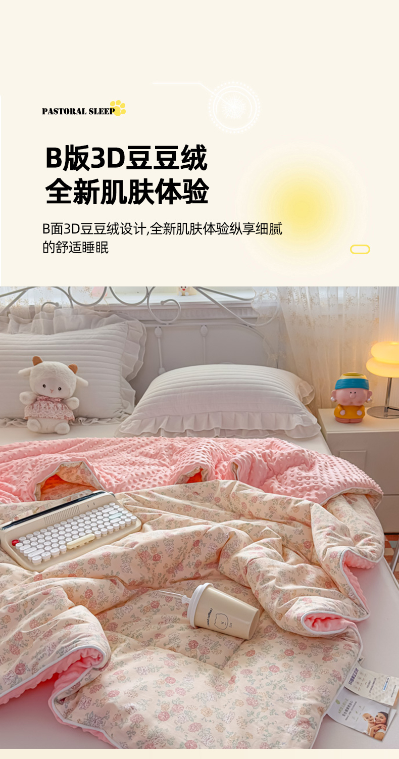 青螺家纺 2025新款高密全棉嵌绳宝宝绒春秋豆豆被 支持定制花色和冬被 有量来门市优惠 爱丽花园