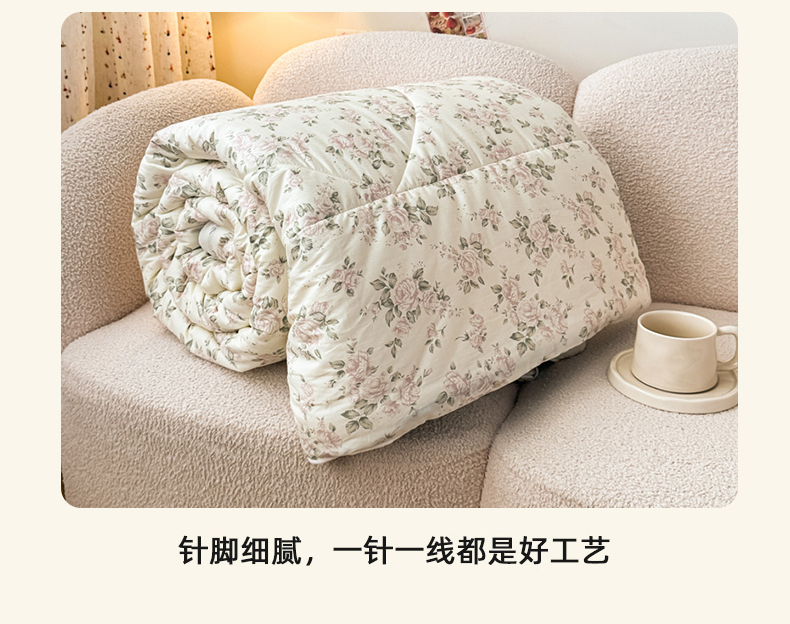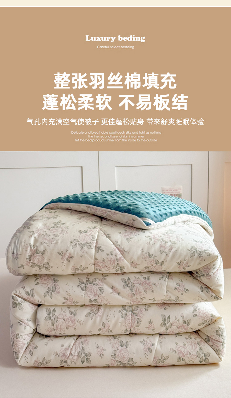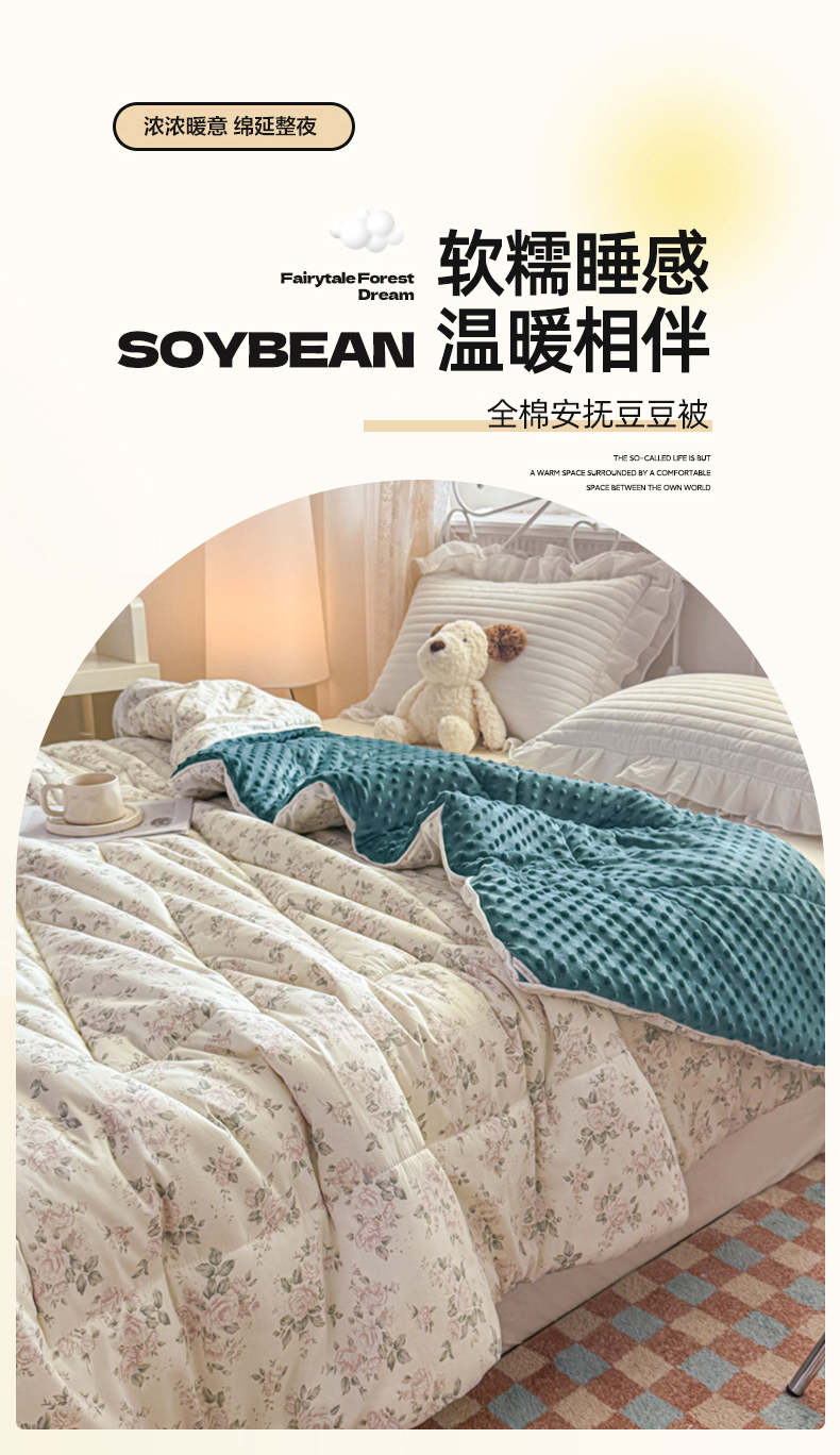 商品名称:青螺家纺 2025新款高密全棉嵌绳宝宝绒春秋豆豆被 支持定制花色和冬被 有量来门市优惠 茉莉花开