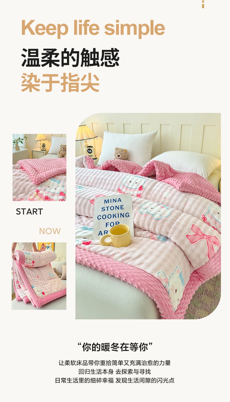 (总)宜梦家居 2025新款獭兔绒三层夹棉加厚豆豆棉被子被芯,抱抱熊,蛋糕猫,蝴蝶,花草狗,卡皮巴拉,蓝狗,蓝色动物,美乐蒂,奶牛,南瓜,星月,熊猫,郁金香,紫花