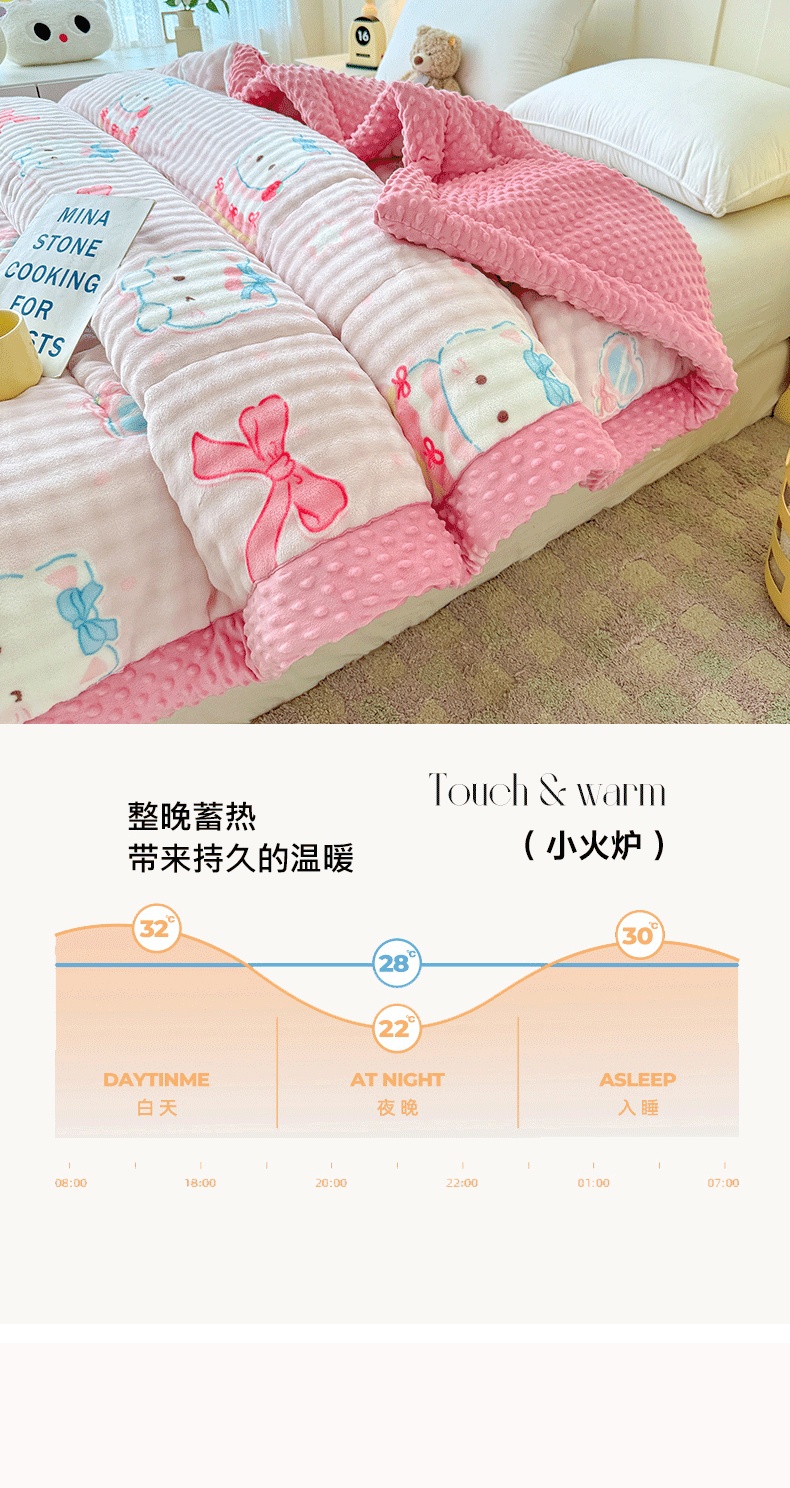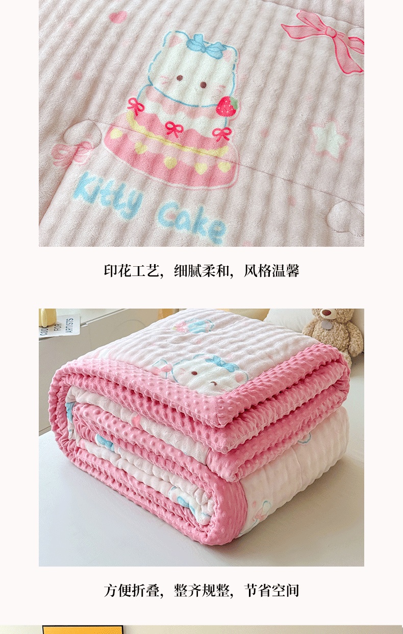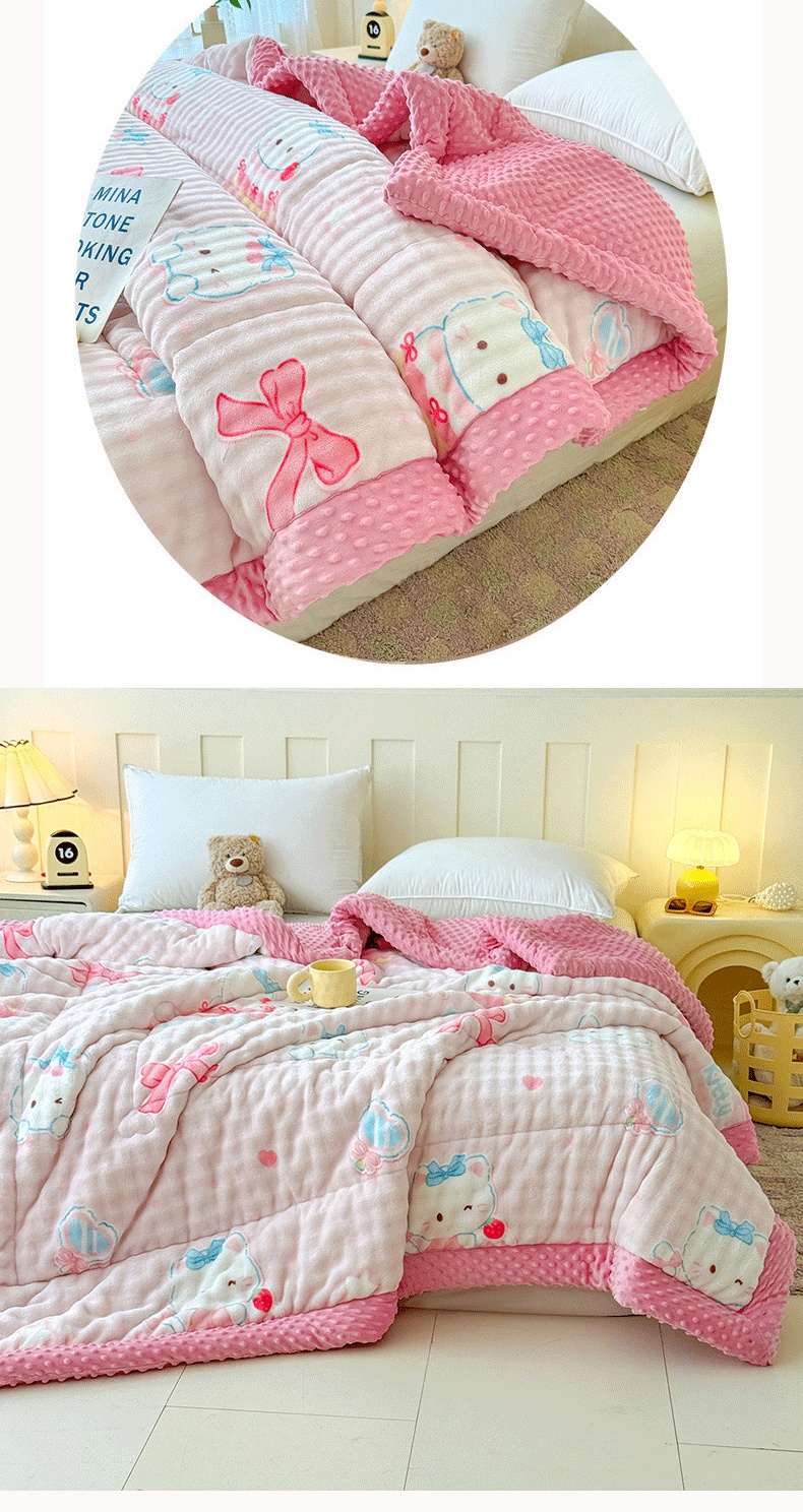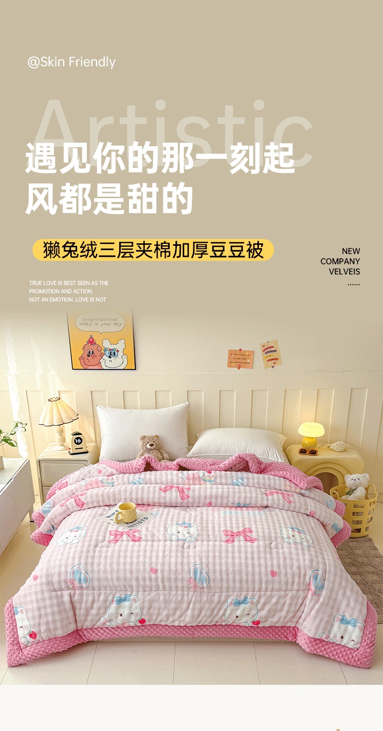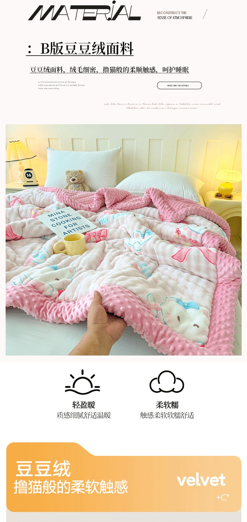 商品名称:宜梦家居 2025新款獭兔绒三层夹棉加厚豆豆棉被子被芯 蛋糕猫