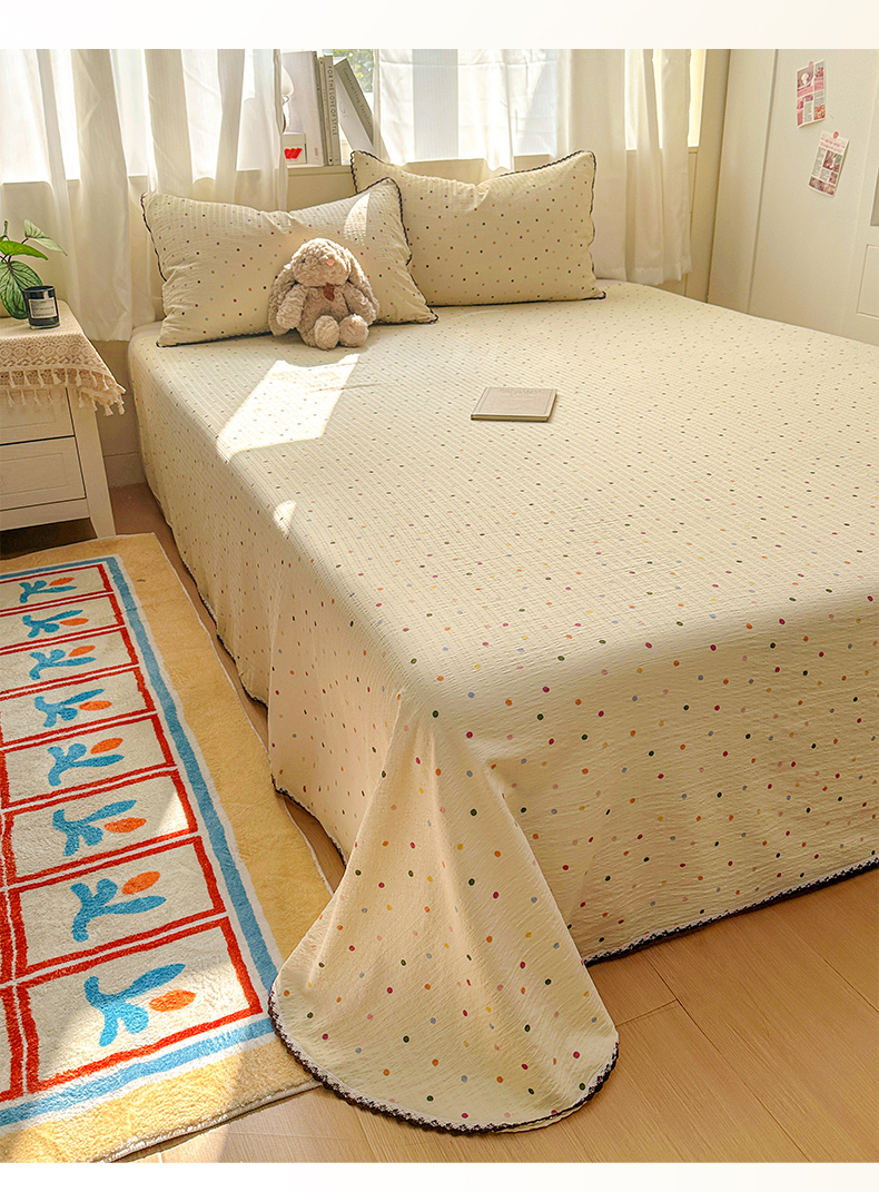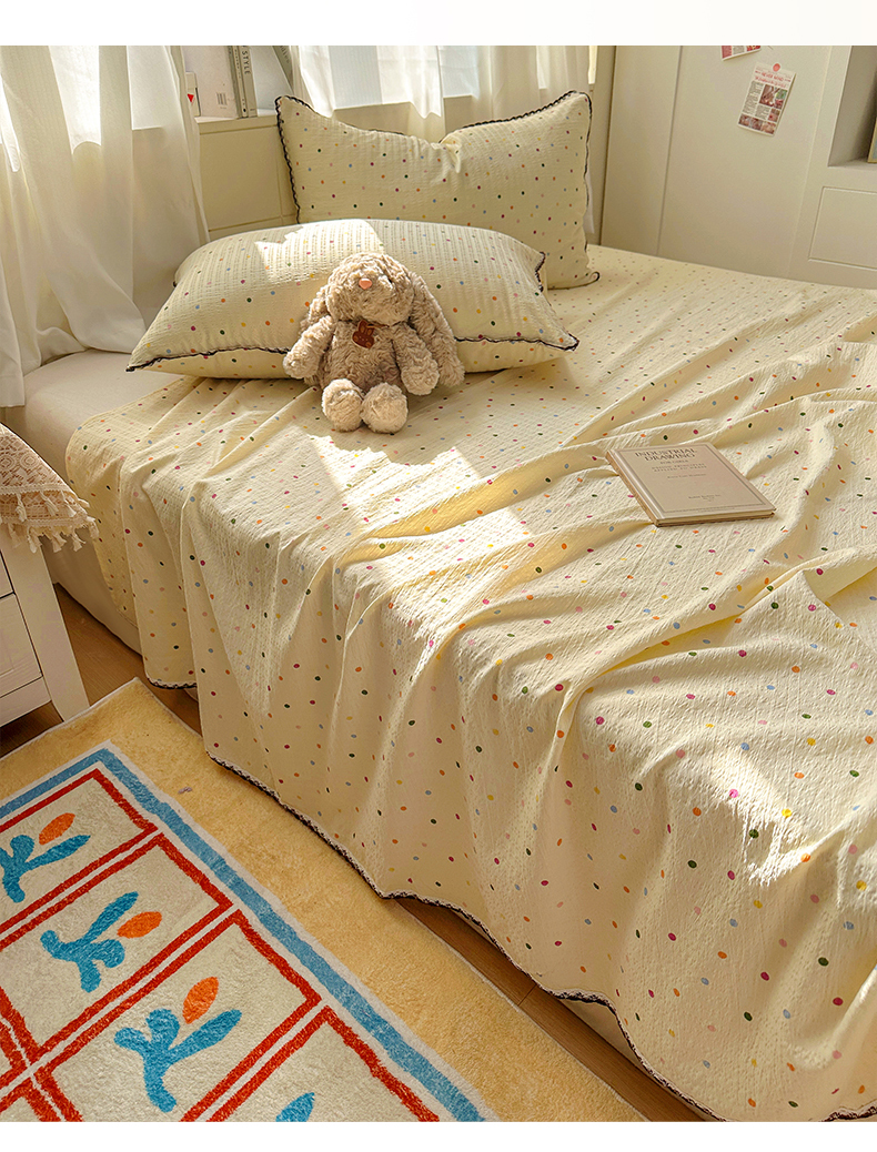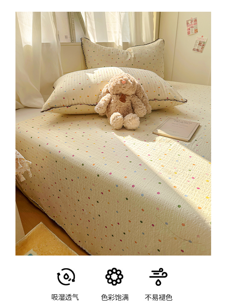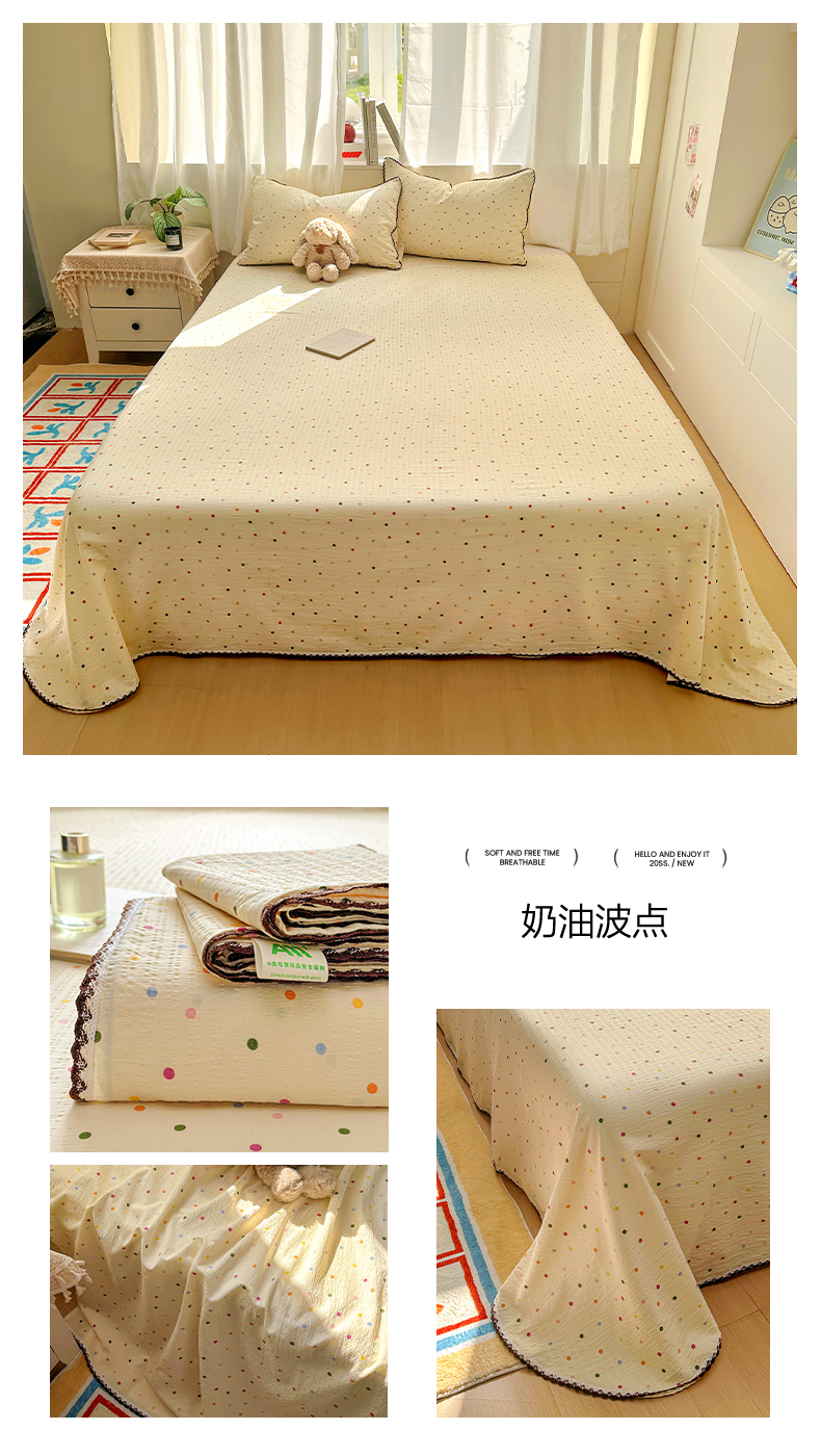 优卡迪家纺馆 2025新款皱皱棉小花边床单(下载文件包含买家秀) 元气小熊