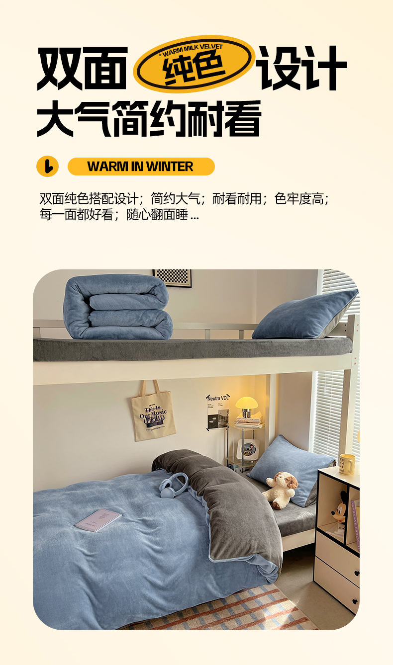 当前位置: 91家纺网 > 商品网购 > 床品套件 > 三件套 > 优卡迪家纺馆 2025新款牛奶绒纯色双拼宿舍床三件套 海蓝深灰