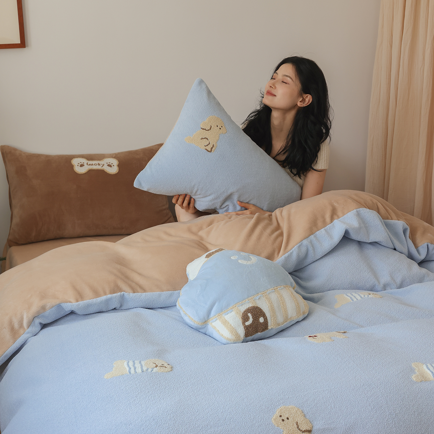 (总)风向标家纺 2025新款A类全消光暖呢绒毛巾绣四件套-减龄家宠系列(风格二)