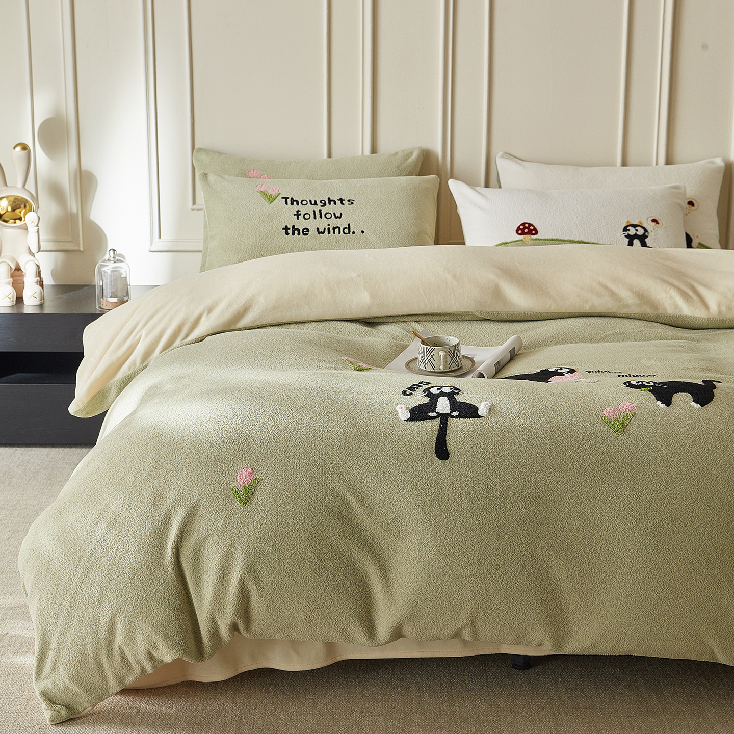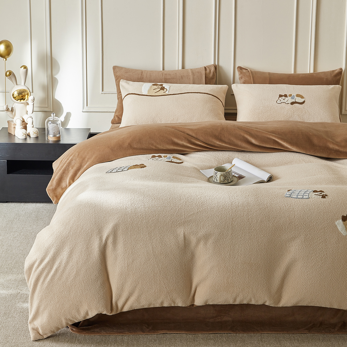当前位置: 91家纺网 > 商品网购 > 床品套件 > 四件套 > 毛巾绣四件套 > 风向标家纺 2025新款A类全消光暖呢绒毛巾绣四件套-减龄家宠系列(风格三) 躺平猫-淡紫