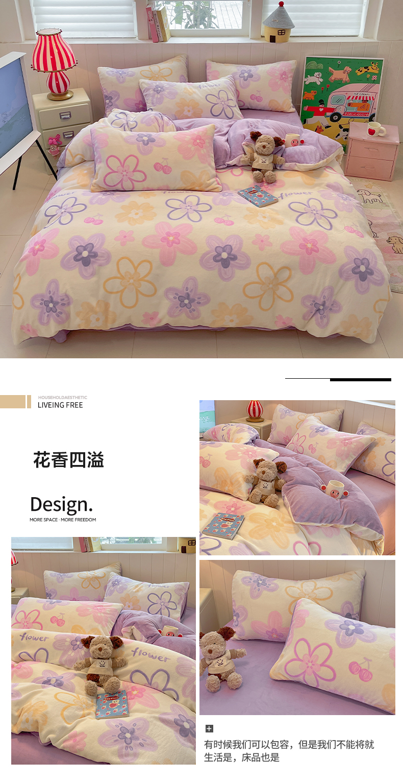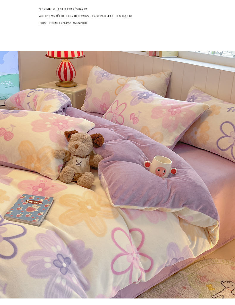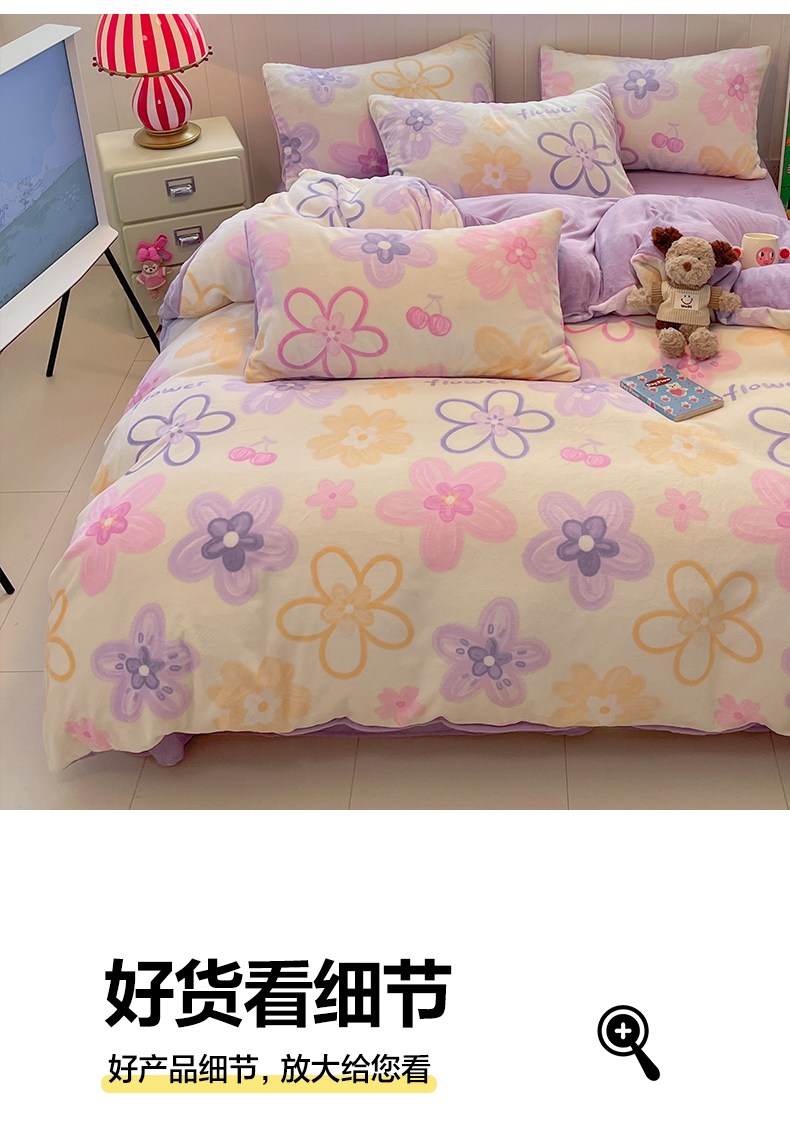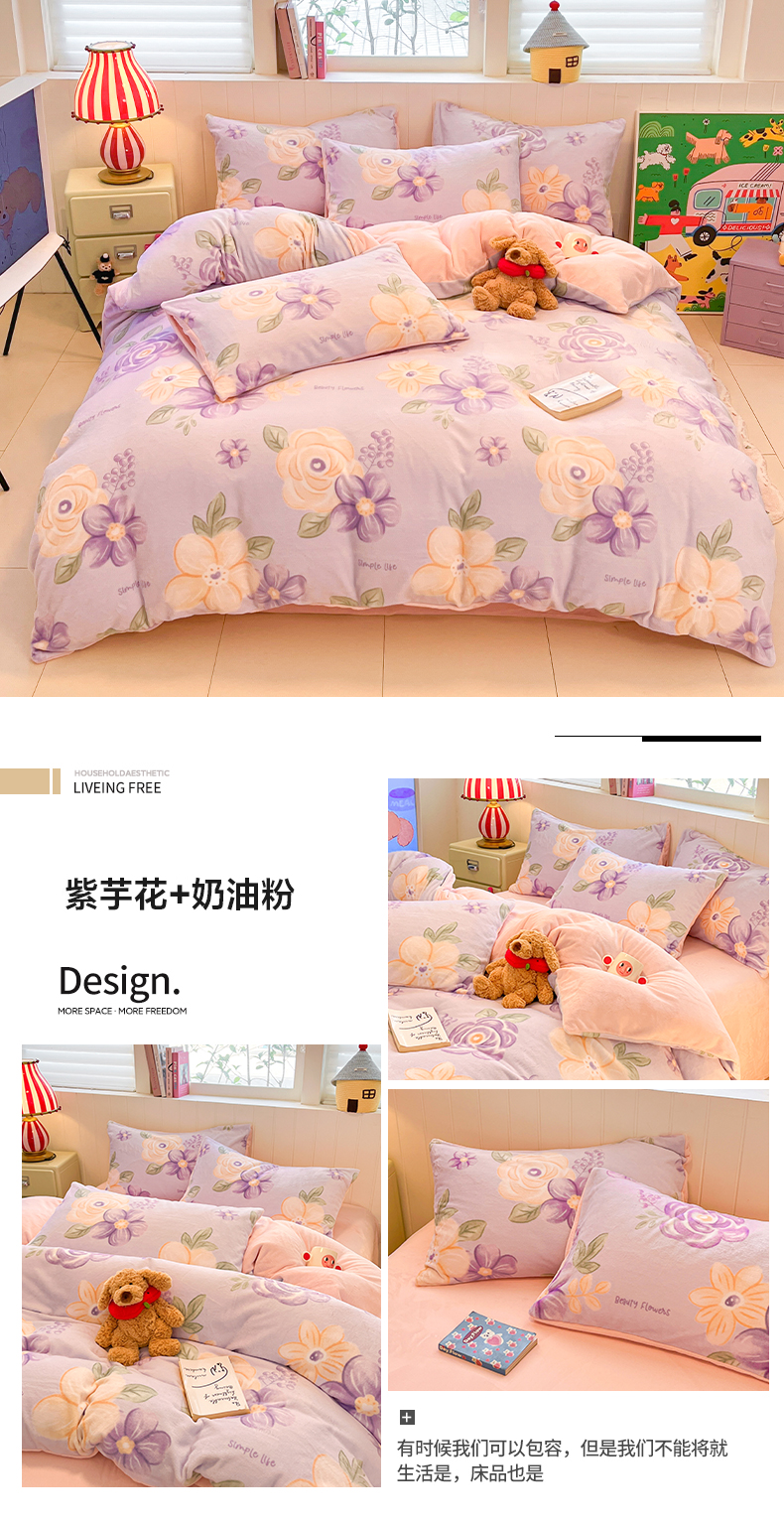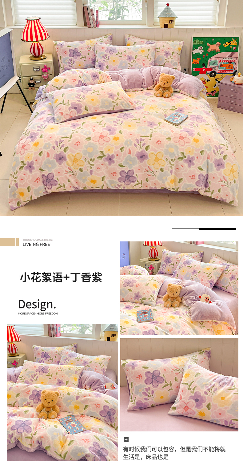 当前位置: 91家纺网 > 商品网购 > 床品套件 > 四件套 > 牛奶绒四件套 > 佳汐蓝家纺 2025新款190克高克重牛奶绒印花四件套 花香四溢+丁香紫