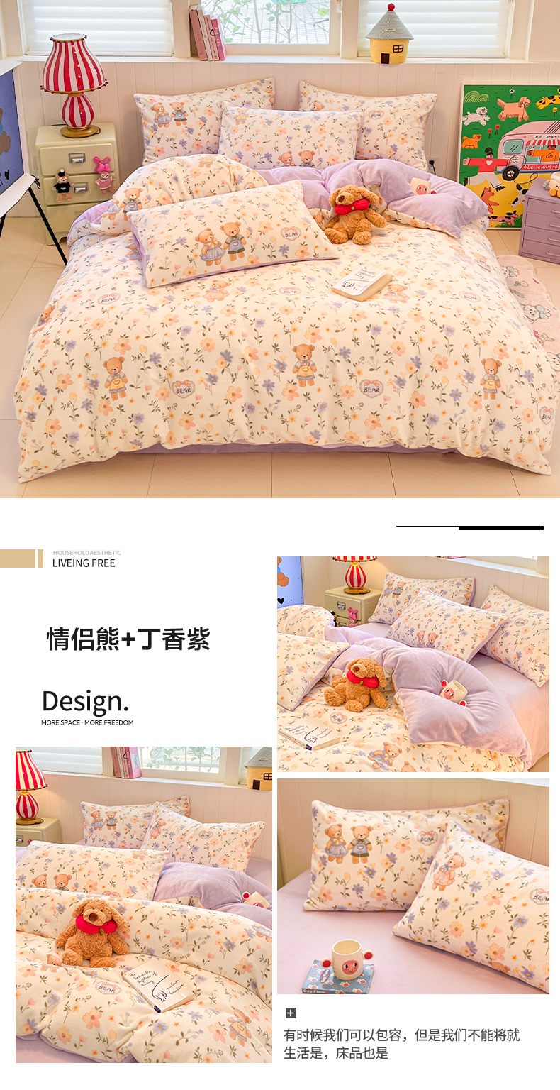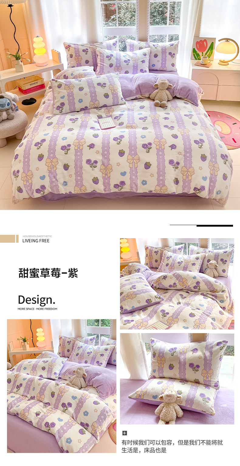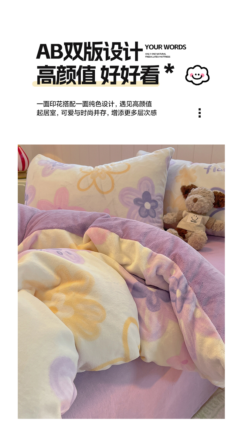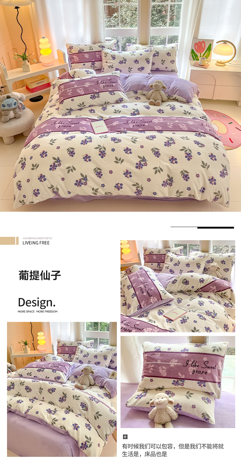 当前位置: 91家纺网 > 商品网购 > 床品套件 > 四件套 > 牛奶绒四件套 > 佳汐蓝家纺 2025新款190克高克重牛奶绒印花四件套 花香四溢+丁香紫